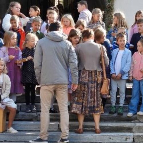 Anschließend eröffneten die Volksschulkinder die Erntedankfeier mit einem Danklied.