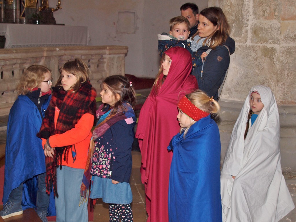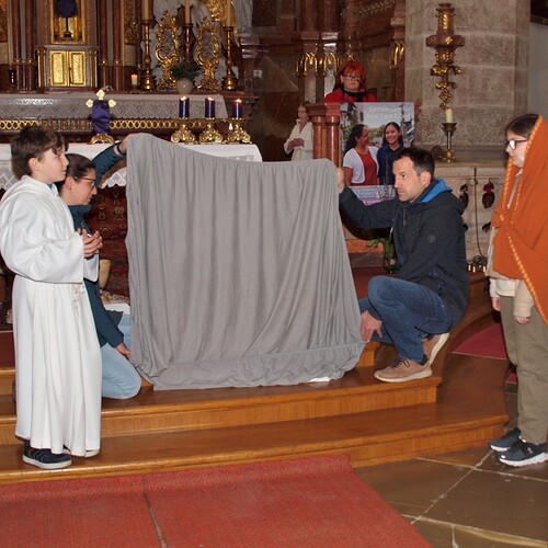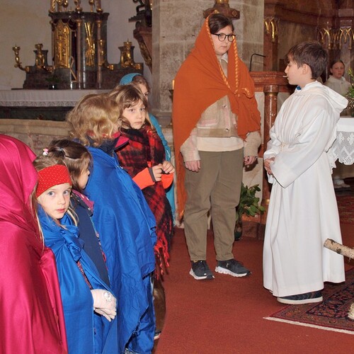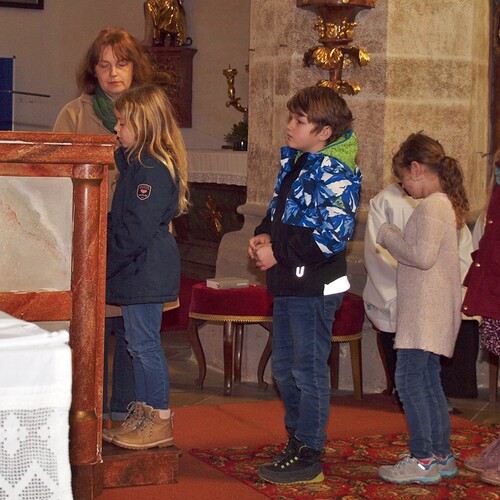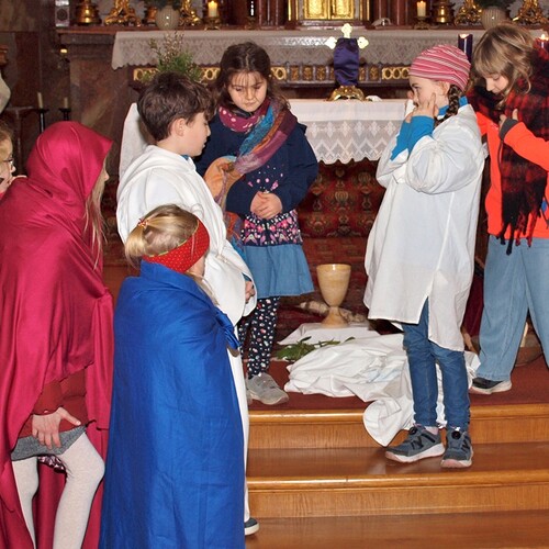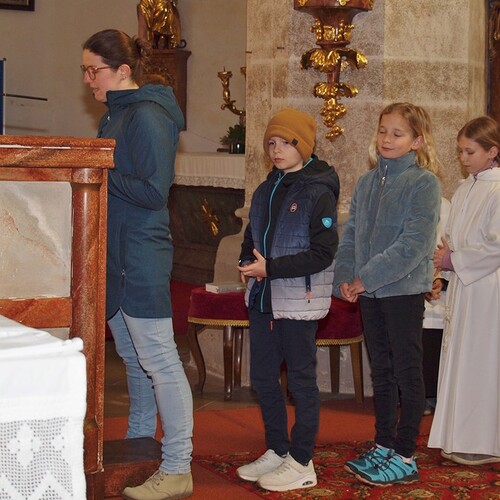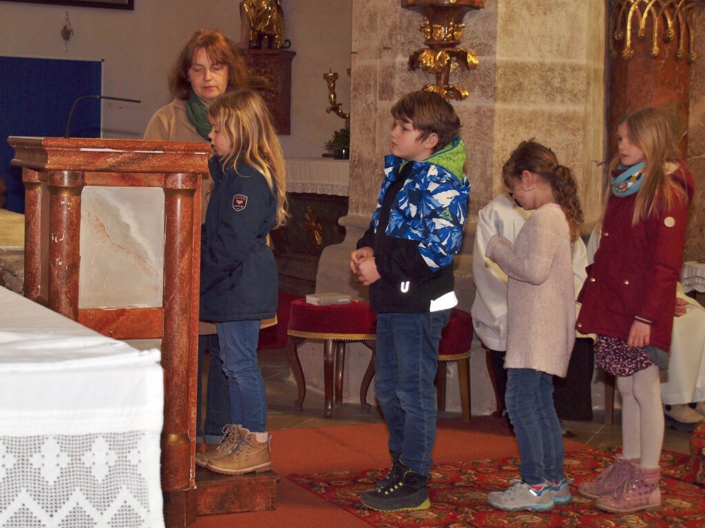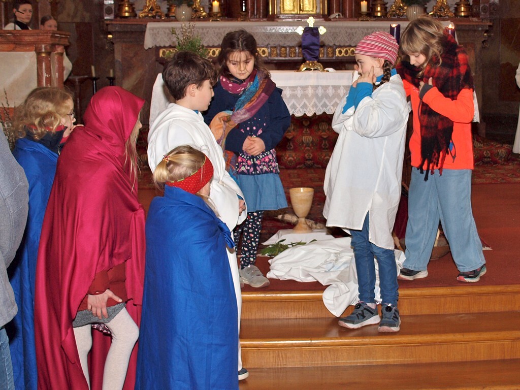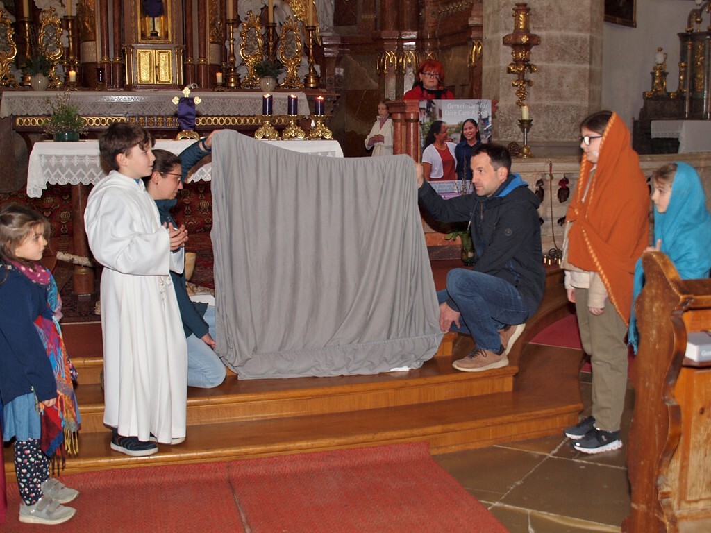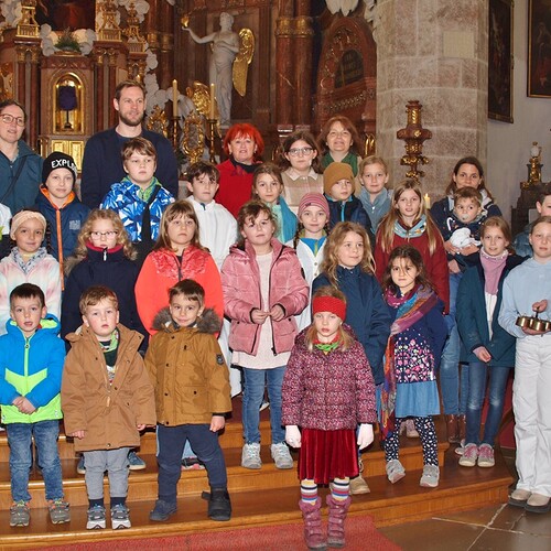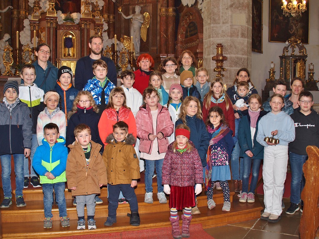 Die Kinder und das Liturgieteam versammelten sich nach der Feier zu einem Gruppenfoto, welches mit Grüßen und Genesungswünschen an Pfarrer P. Christoph weitergeleitet wurde.