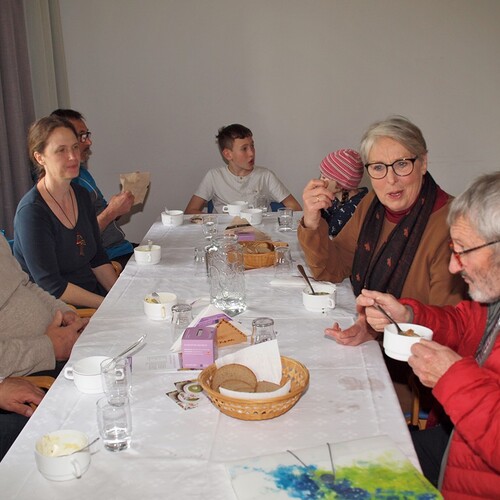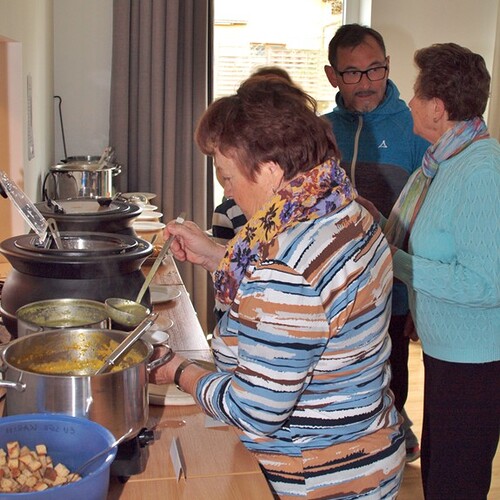 Nach der Feier fand noch im Pfarrtreff das schon traditionelle Fastensuppenessen statt. Es konnten auch Suppen im Glas für verhinderte Familienangehörige mitgenommen werden.