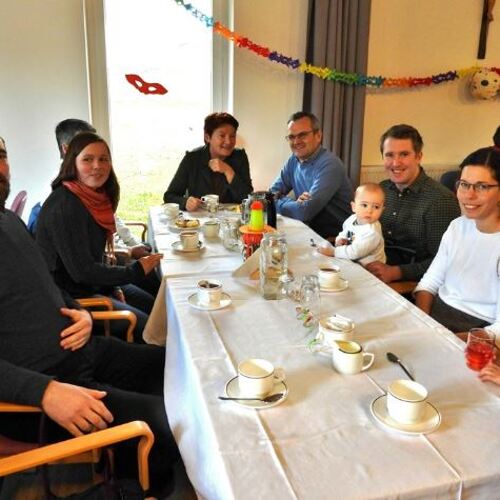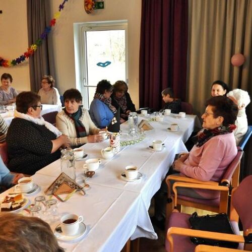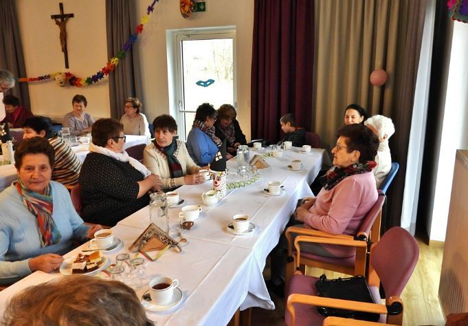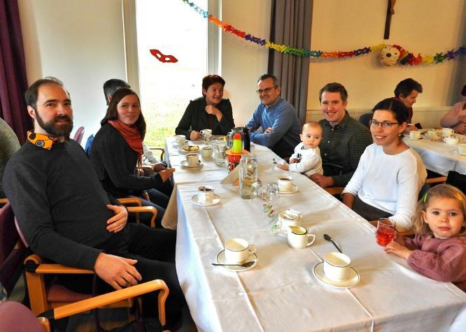 Im Anschluss lud der Ausschuss für Caritas und Senioren zum Pfarrkaffee in den Pfarrtreff. Unerwartet viele Messbesucher folgten dieser Einladung.