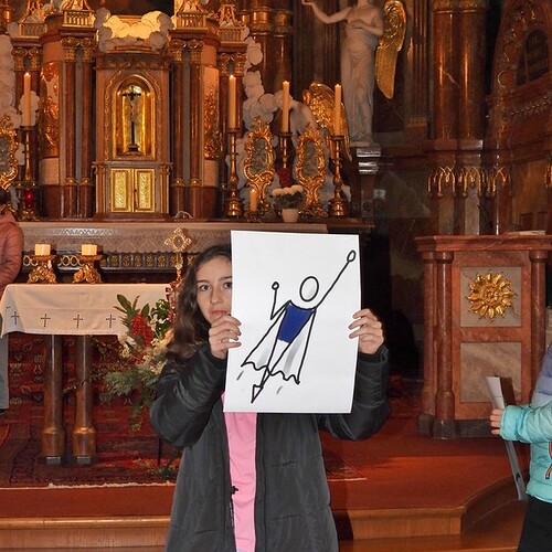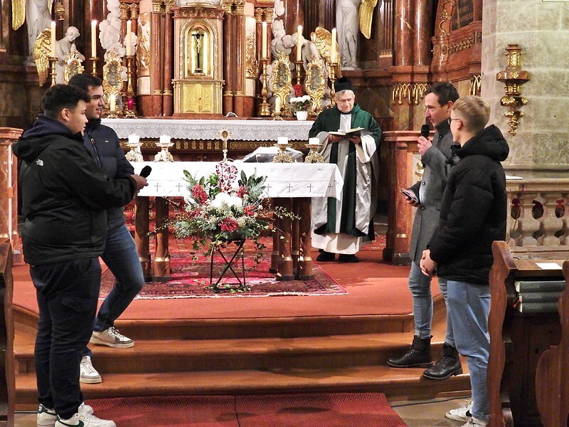 Nach der festlichen Messe boten die Firmkandidatinnen und Firmkandidaten die heurigen Missionskerzen um 3 € an, welche auch an den nächsten Sonntagen noch verkauft werden.