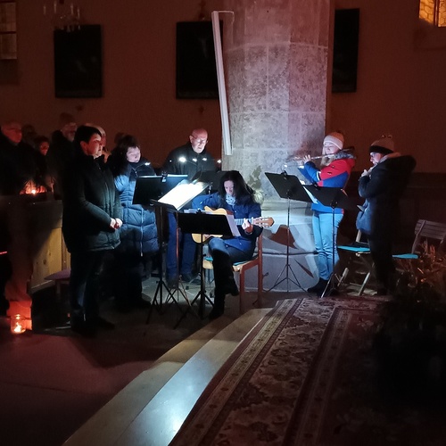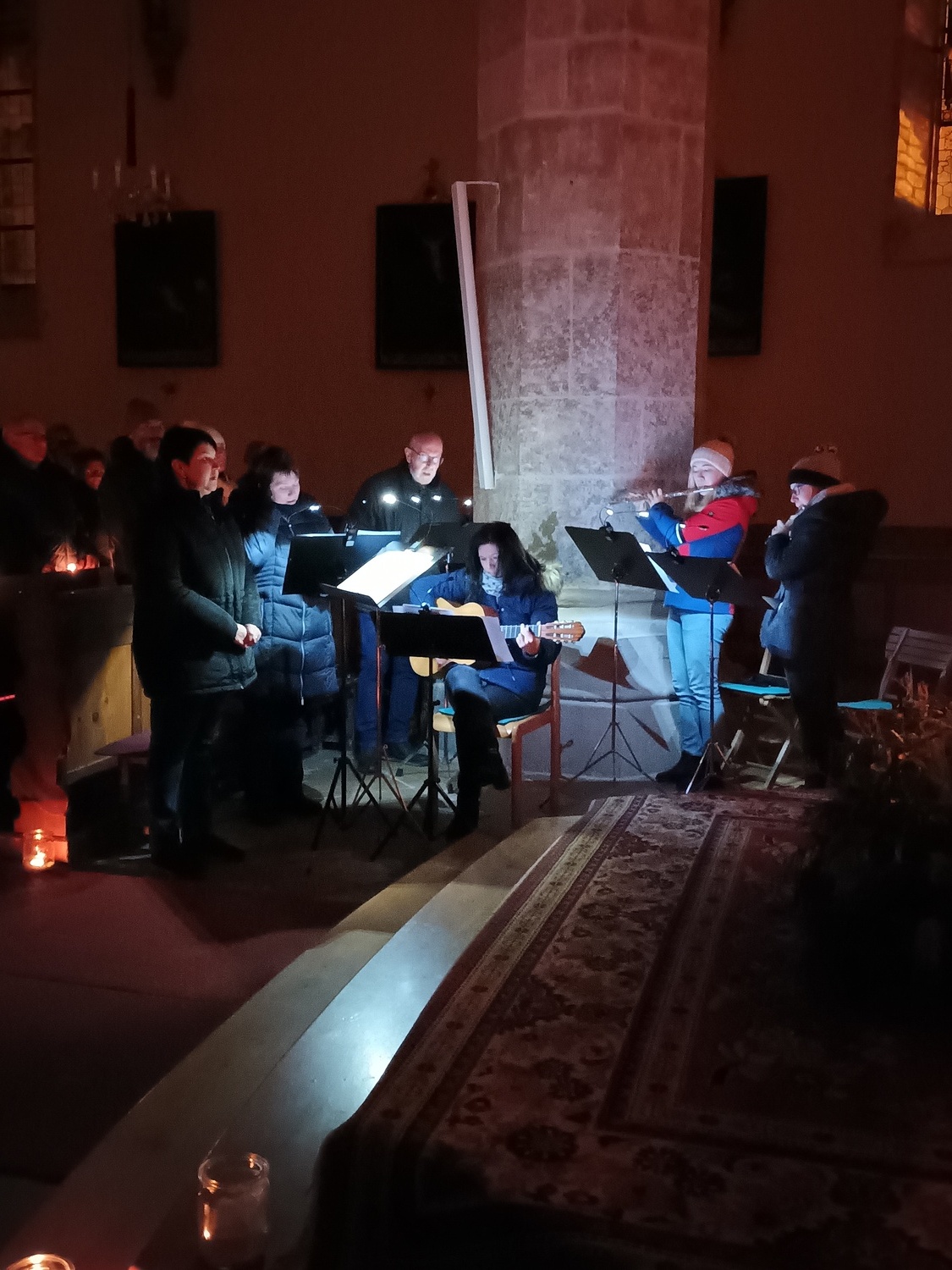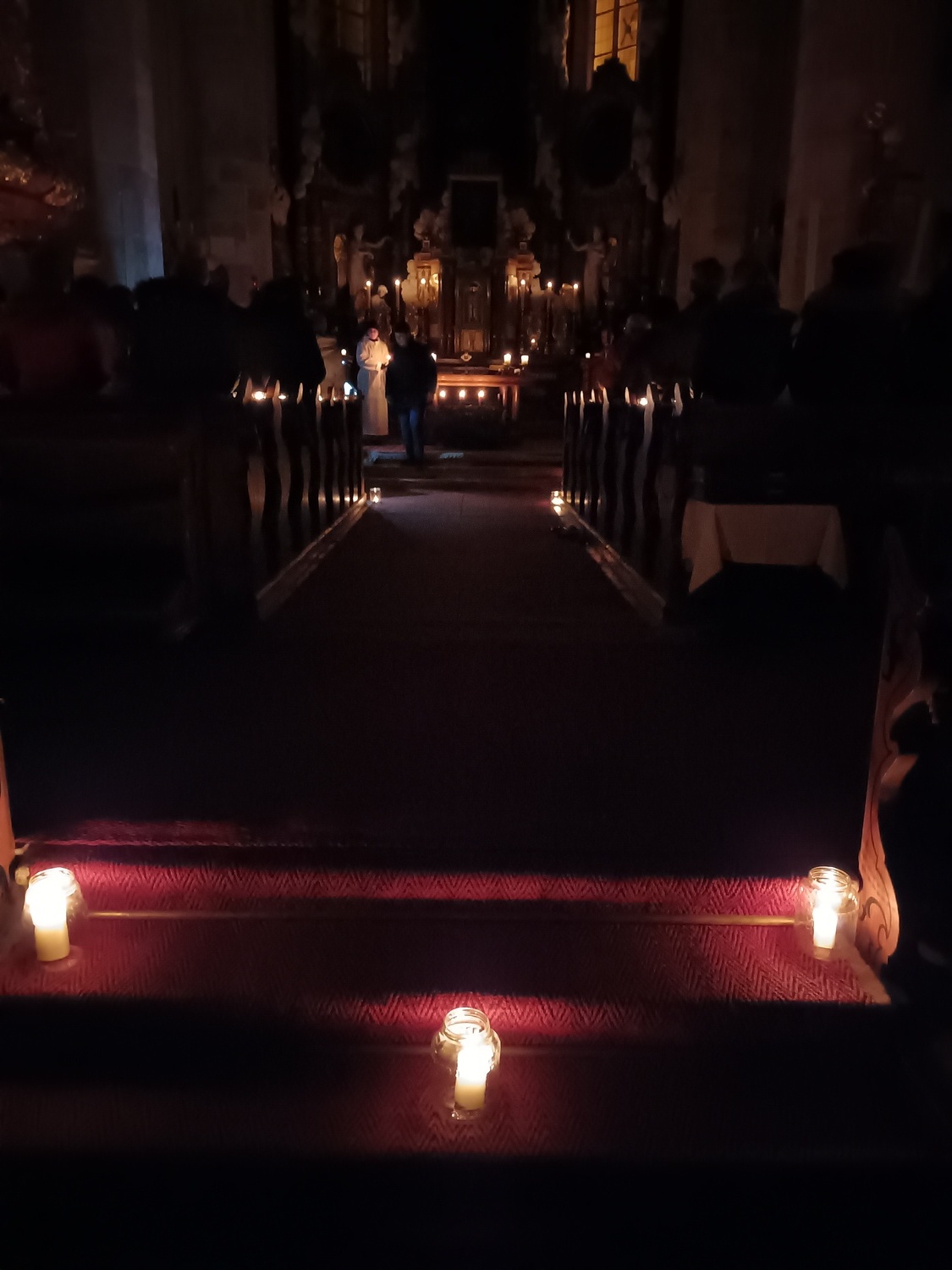 Bei Kerzenschein wurde die hl. Messe von ca. 100 Messbesuchern stimmungsvoll gefeiert.