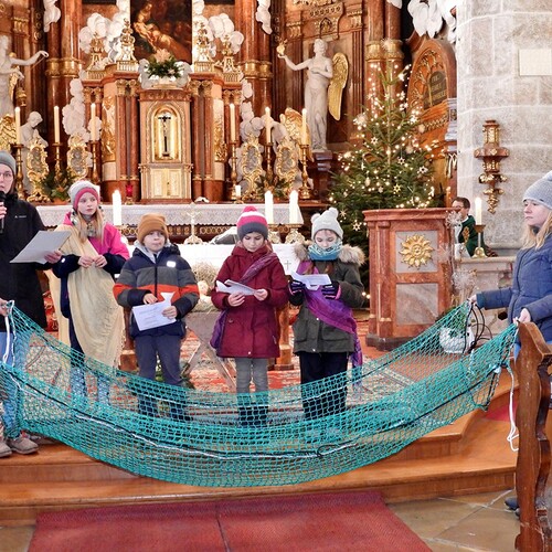 Erstmals fand der Familiengottesdienst als Wort-Gottes-Feier statt. Das Liturgieteam hatte zum Evangelium mit den Kindern die Passionsspielszene von der Auferweckung des Lazarus vorbereitet.