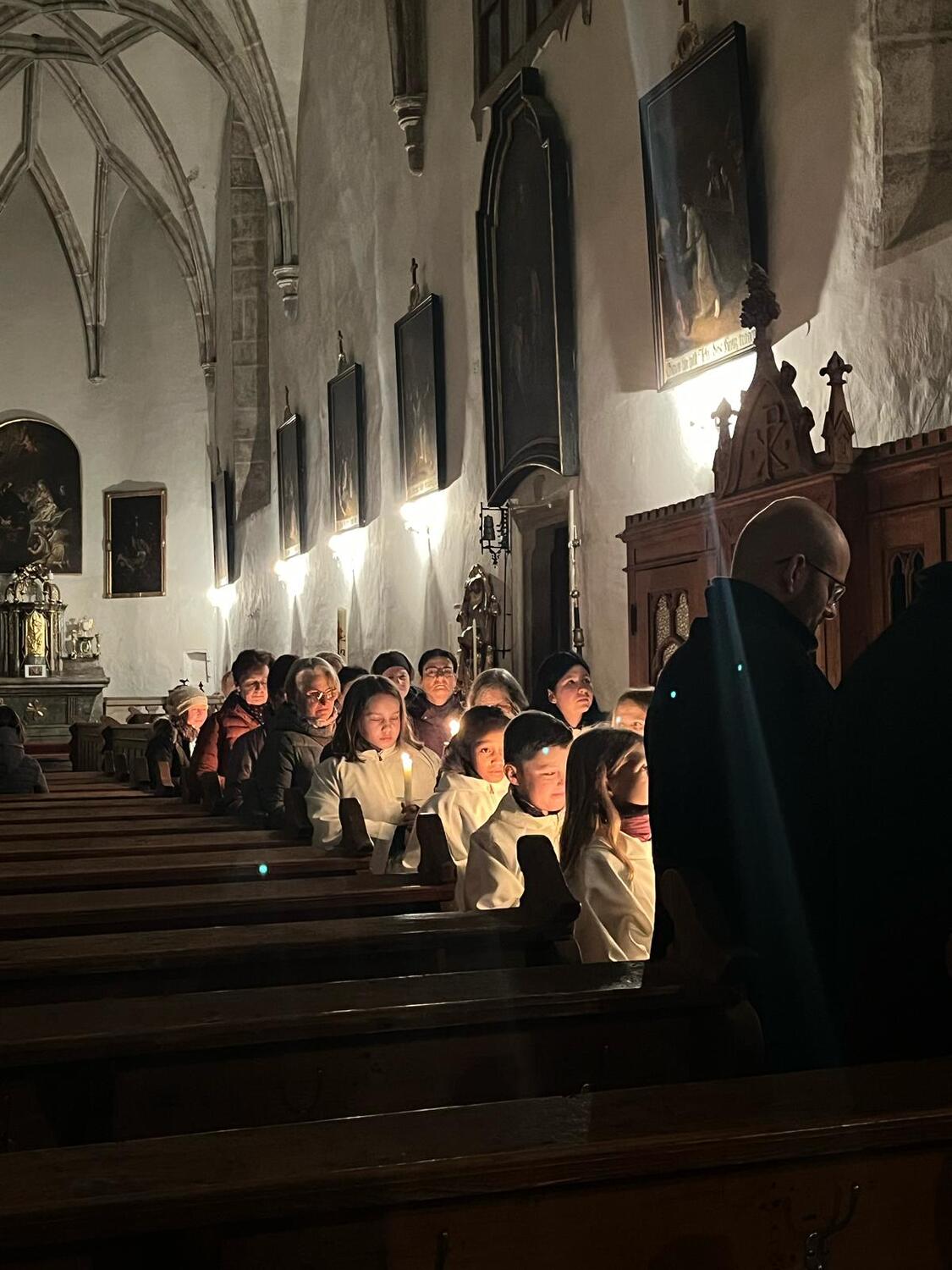Bei Kerzenschein und meditativen Texten verfolgten viele Besucher den Kreuzweg. Besonders schön war, dass die Firmlinge mit uns feierten.