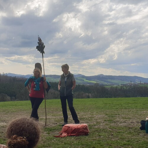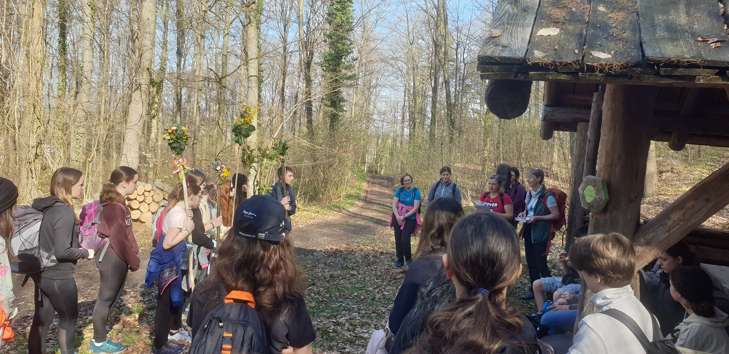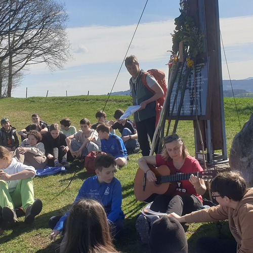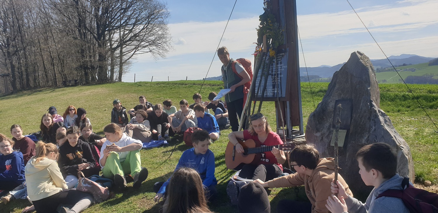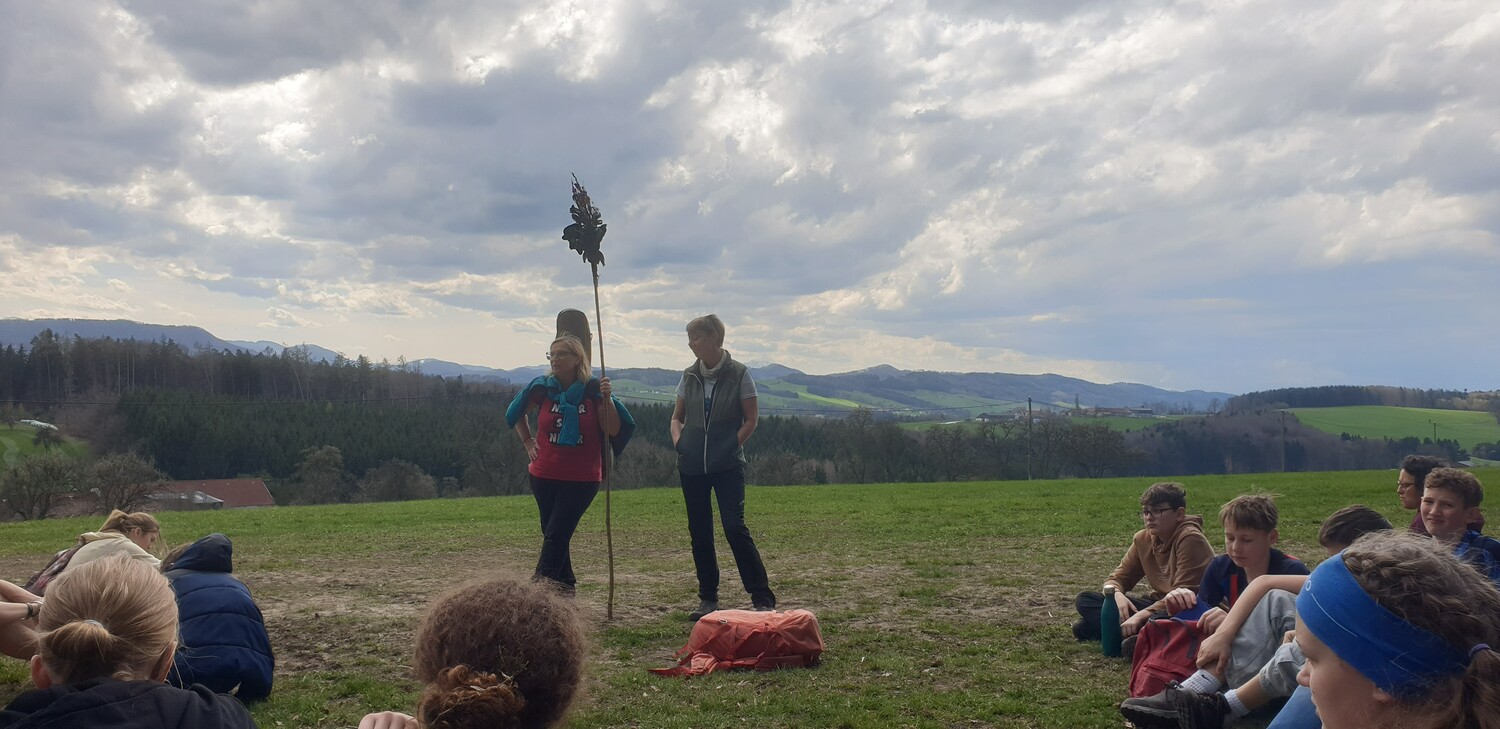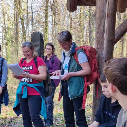 Die Pilgerung setzte sich fort, und an verschiedenen Stationen gab es immer wieder Impulse. Ein Zitat von Anselm Grün ermutigte die Firmlinge, ihren eigenen Weg zu finden und mutig zu gehen. Sie wurden ermutigt, ihren verlässlichen Begleitern Dankbarkeit zu zeigen und selbst verlässliche Begleiter für andere zu sein.