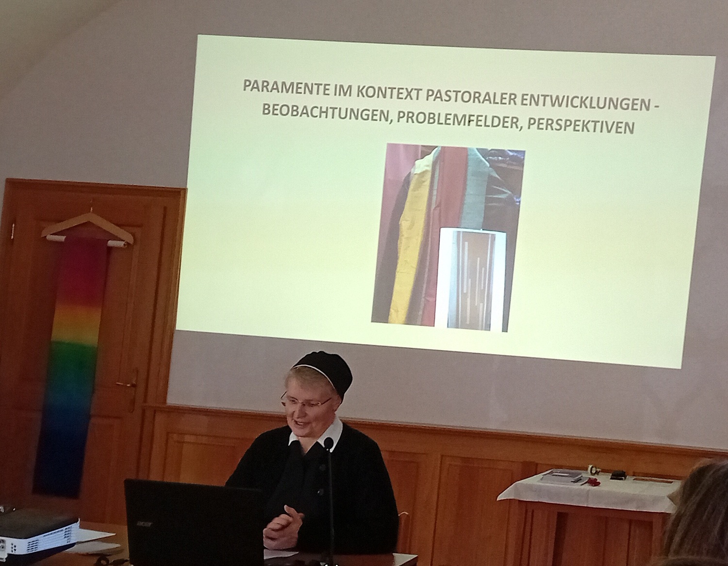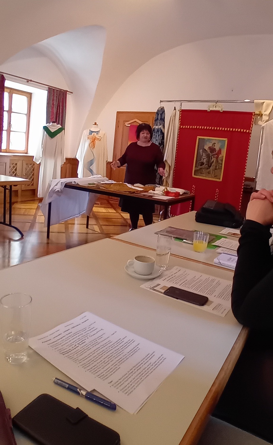 Das Themenfeld umspannte die Textilgeschichte , pastorale Entwicklungen sowie Wissenswertes zur Pflege & Aufbewahrung von Paramenten.
