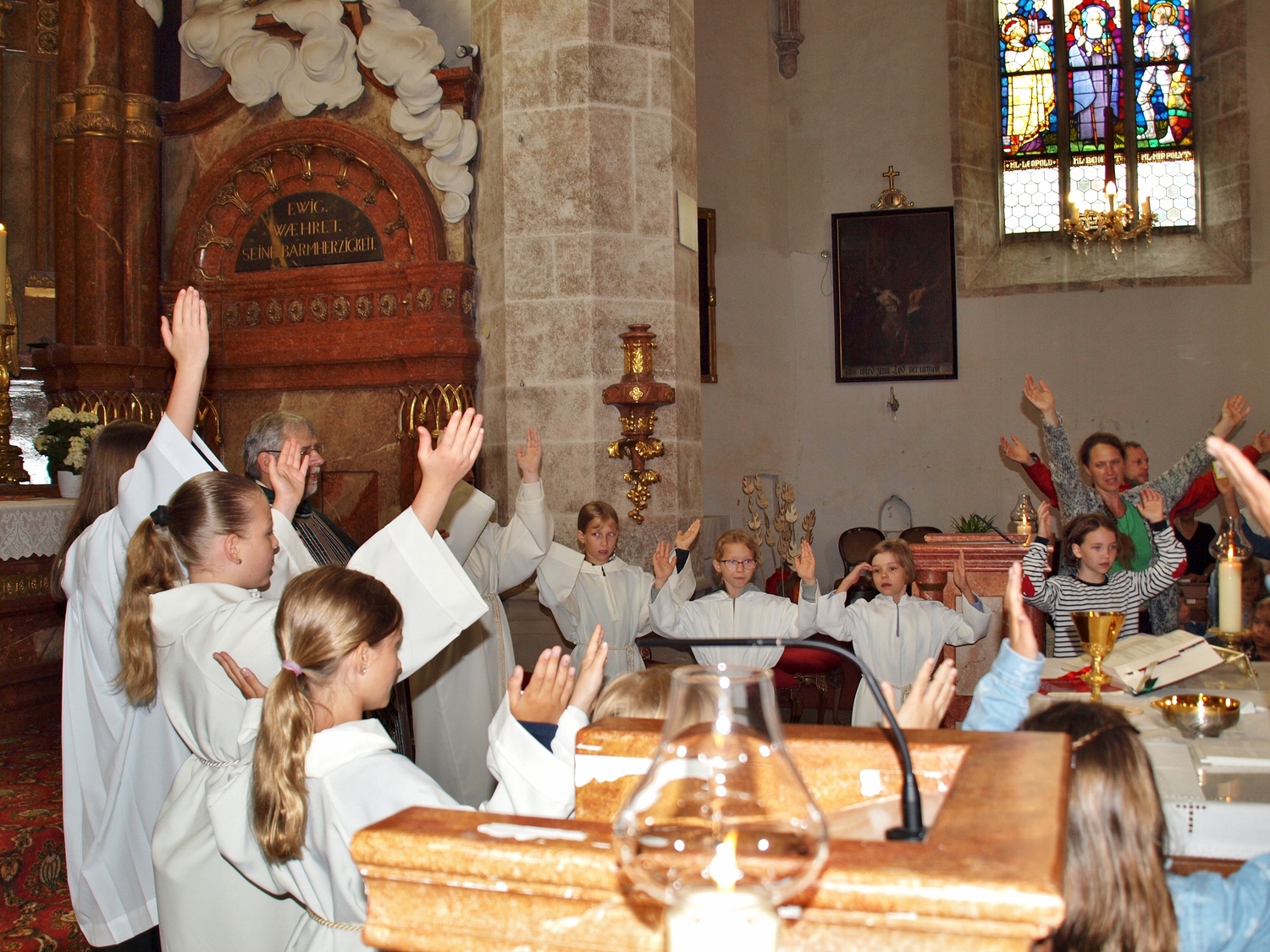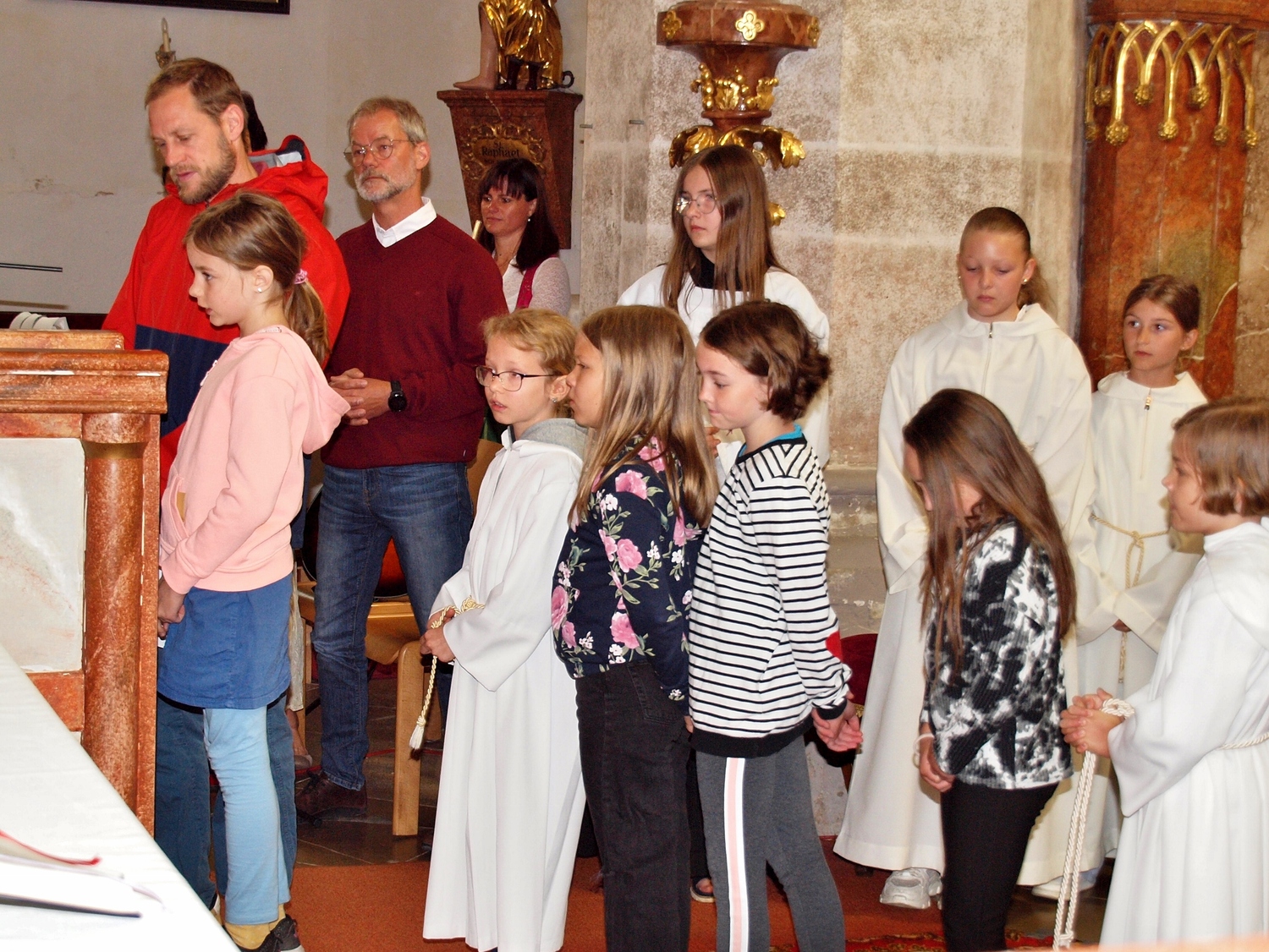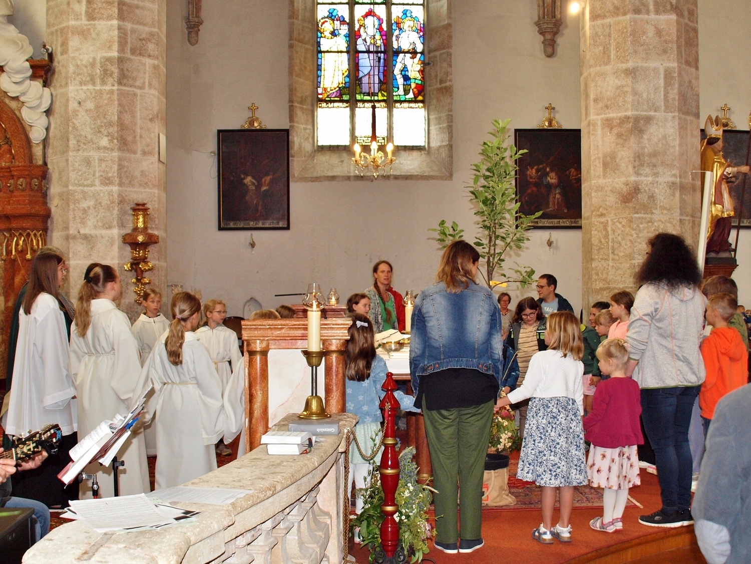 Vor dem Pfarrfest bekamen die Täuflingsfamilien während der Täuflingsmesse auch einen speziellen Segen von Pater Christian. Die Messe wurde von der Familienliturgie-Gruppe gestaltet und tatkräftig von der Musikgruppe der Schönstadt-Runde unterstützt. Das Fest im Anschluss wurde unter der Mithilfe von vielen Freiwilligen von der Familienliturgie-Gruppe, sowie dem Eltern-Kind-Team, PGR und PKR organisiert.