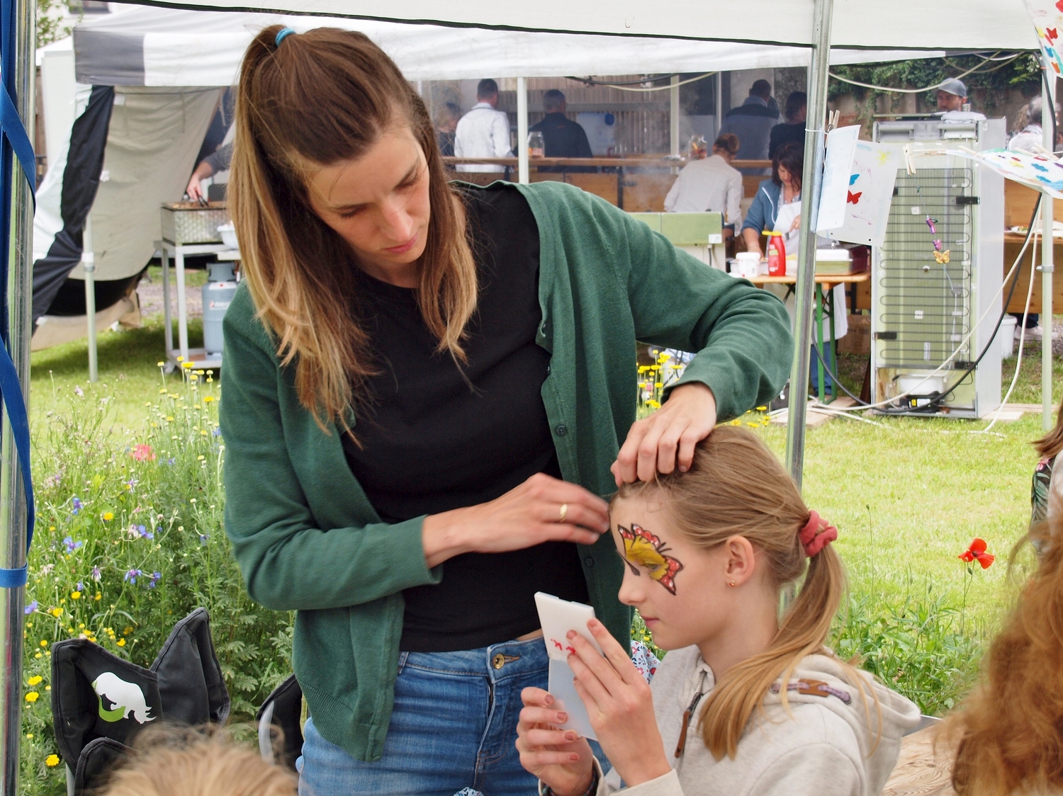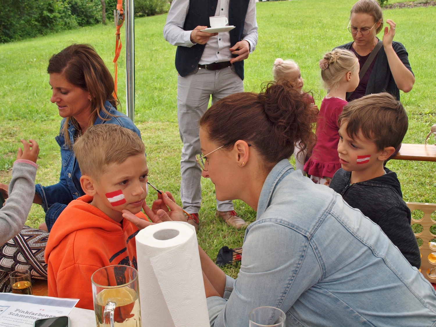 War es zu Beginn noch als kleines Familienfest geplant, entstand bald die Idee, ein schönes Fest für alle zu veranstalten, die uns gerne am himmlischen Platzl besuchen möchten. Es herrschte eine freudige und angenehme Stimmung und mit der Zeit passte sich auch das Wetter der guten Laune an. Neben süßen und sauren kulinarischen Köstlichkeiten und einer Weinbar gab es auch viele Bewegungsstationen für Kinder, eine große Hüpfburg, Kinderschminken und einen Basteltisch. Für jene, die es lieber gemütlich angingen, bot unser schattiges himmlisches Platzerl das ideale Ambiente, um viele gemütliche Stunden zu verbringen.