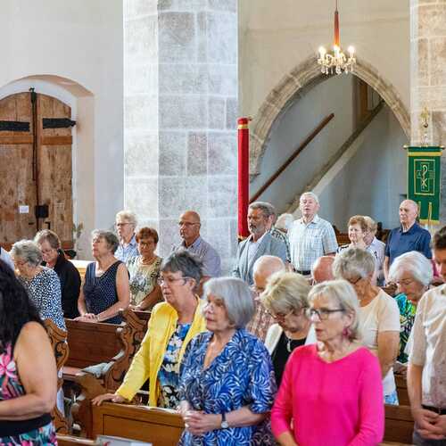 Der Pfarrchor durfte diesen besonderen Anlass musikalisch umrahmen und zwei gewünschte Solostücke (Ave Maria von F. Schubert und Largo aus "Xerxes" von G. F. Händel) zum Besten geben.