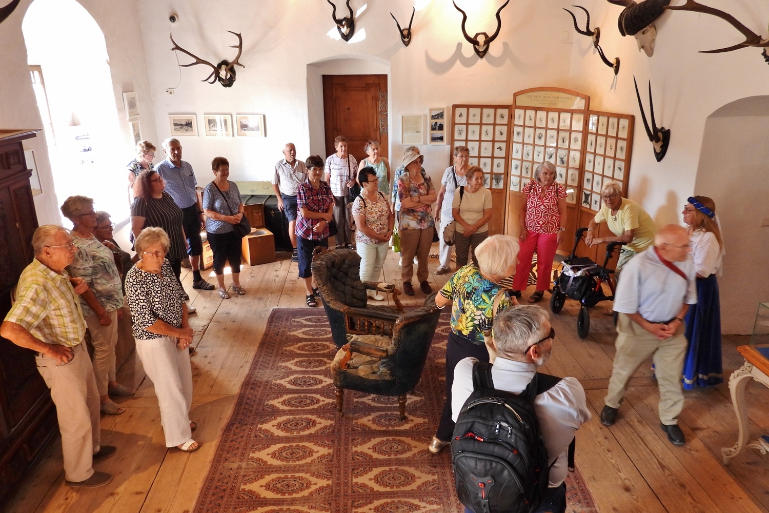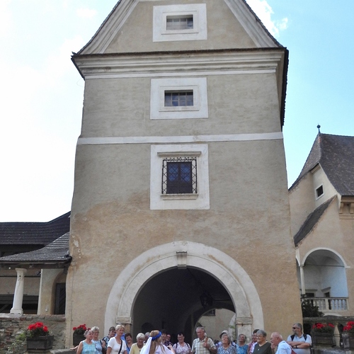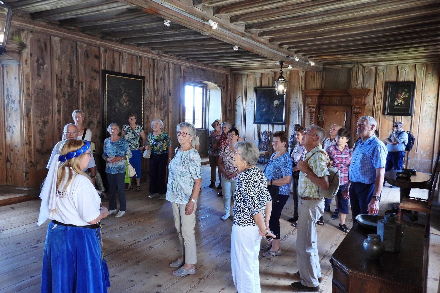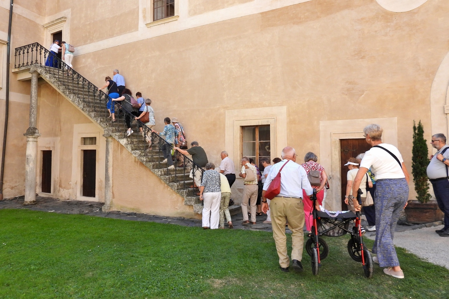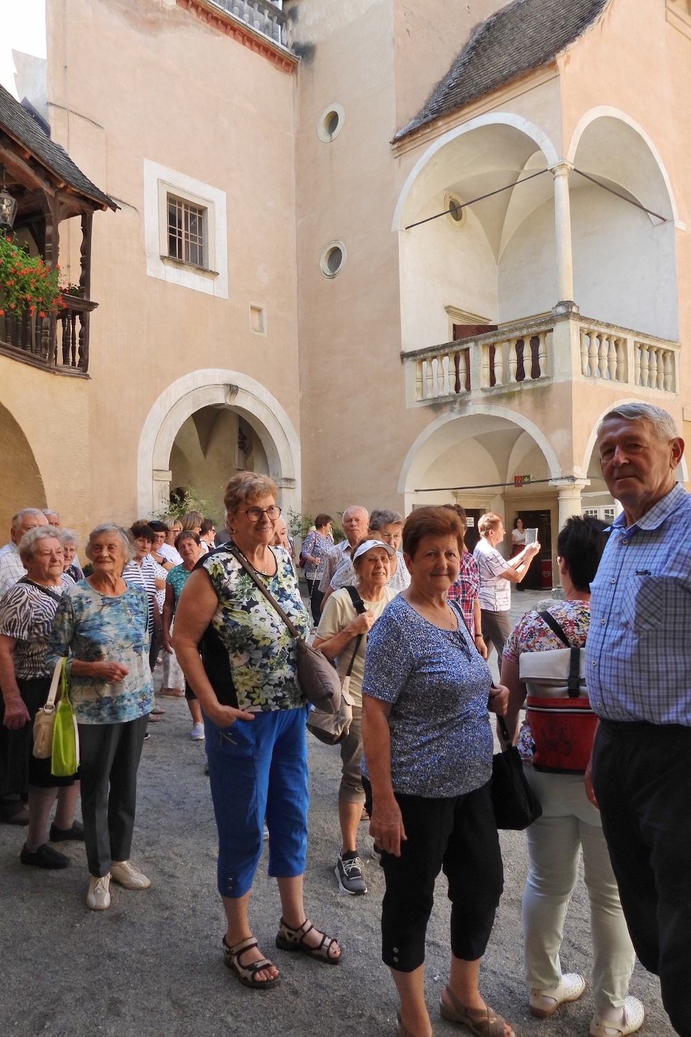 Anschließend führte die Fahrt zur Rosenburg, wo im Schlossgasthof schon das Mittagessen in Form eines Buffets vorbereitet war. Danach fand aufgeteilt in 2 Gruppen eine Führung durch das Schlossmuseum mit seinen herrschaftlichen Wohnräumen, Prunksälen, Schlosskapelle und Bibliothek statt.