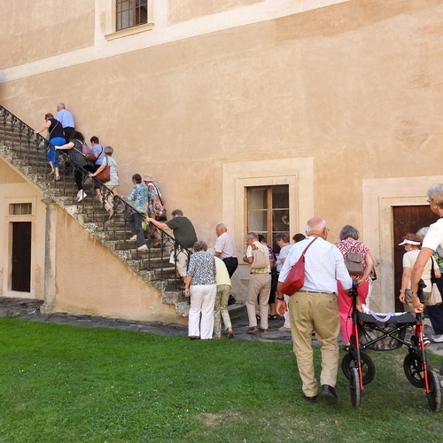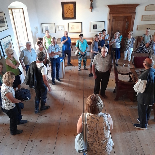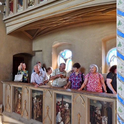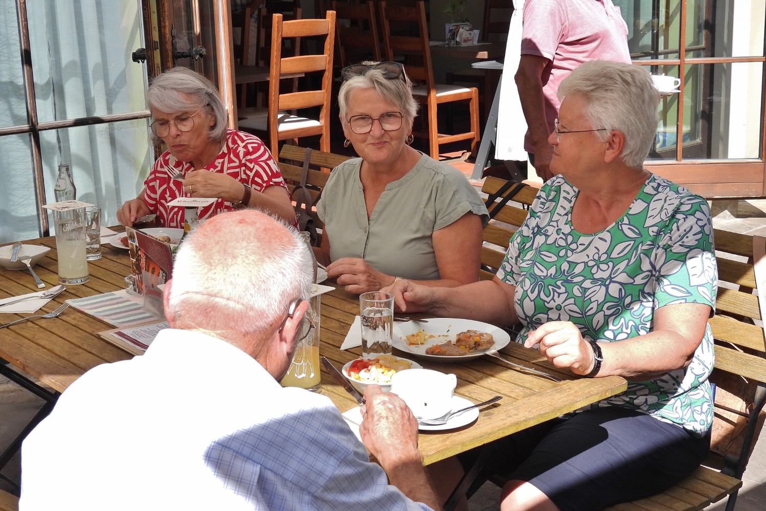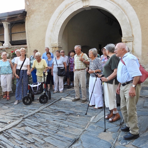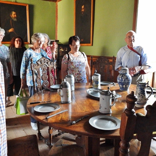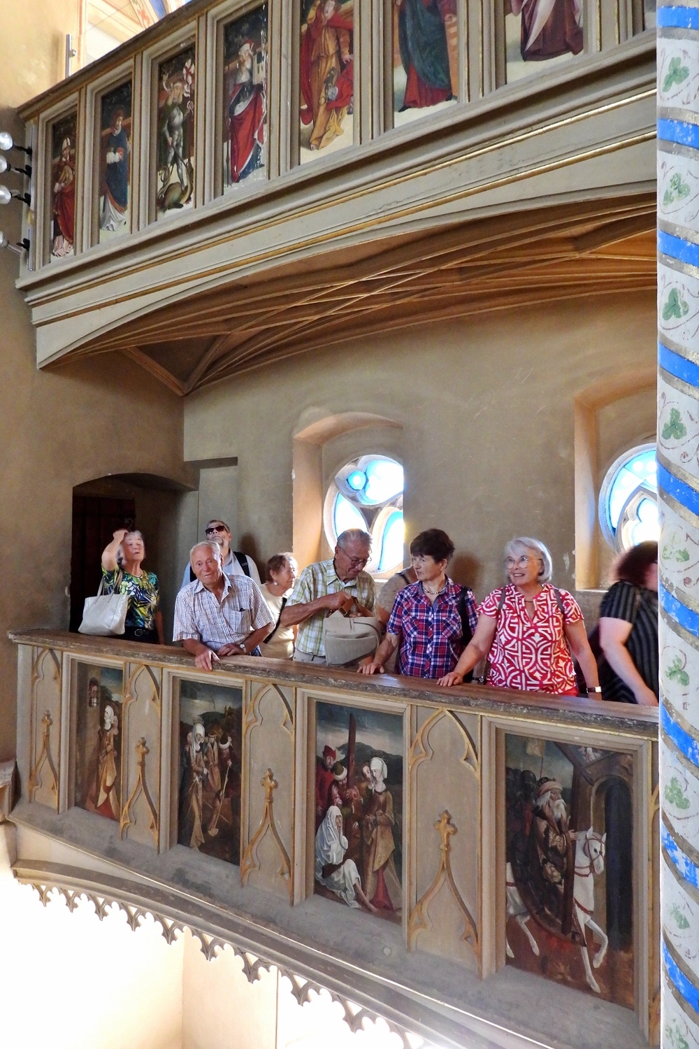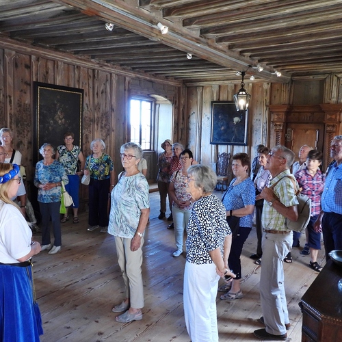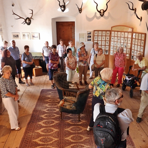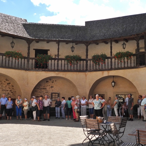 Anschließend führte die Fahrt zur Rosenburg, wo im Schlossgasthof schon das Mittagessen in Form eines Buffets vorbereitet war. Danach fand aufgeteilt in 2 Gruppen eine Führung durch das Schlossmuseum mit seinen herrschaftlichen Wohnräumen, Prunksälen, Schlosskapelle und Bibliothek statt.
