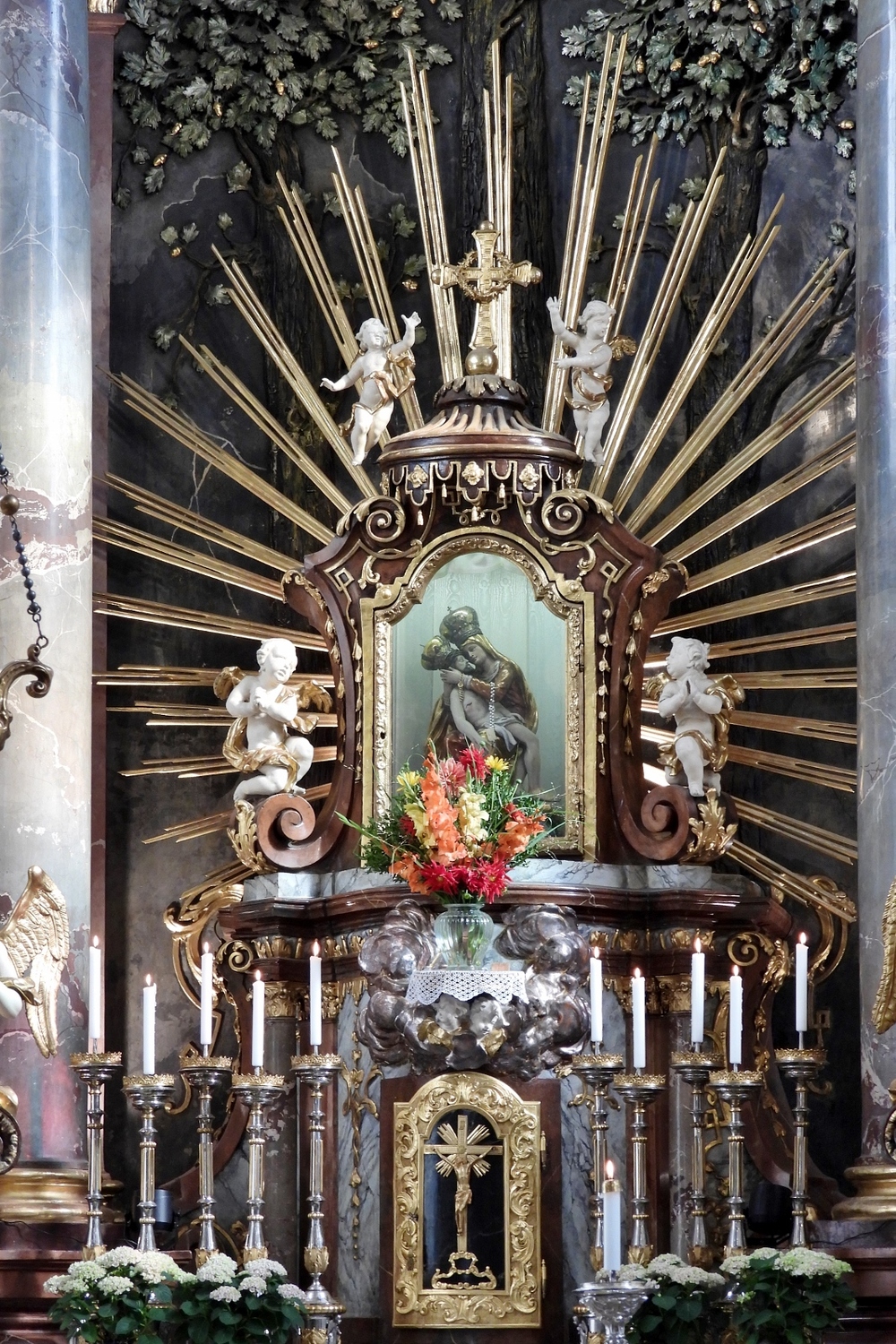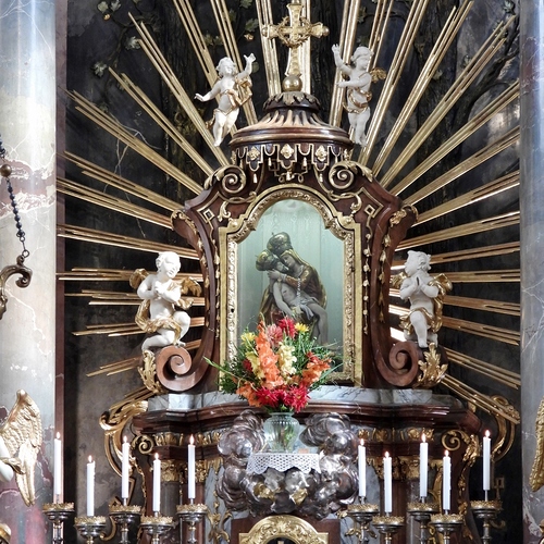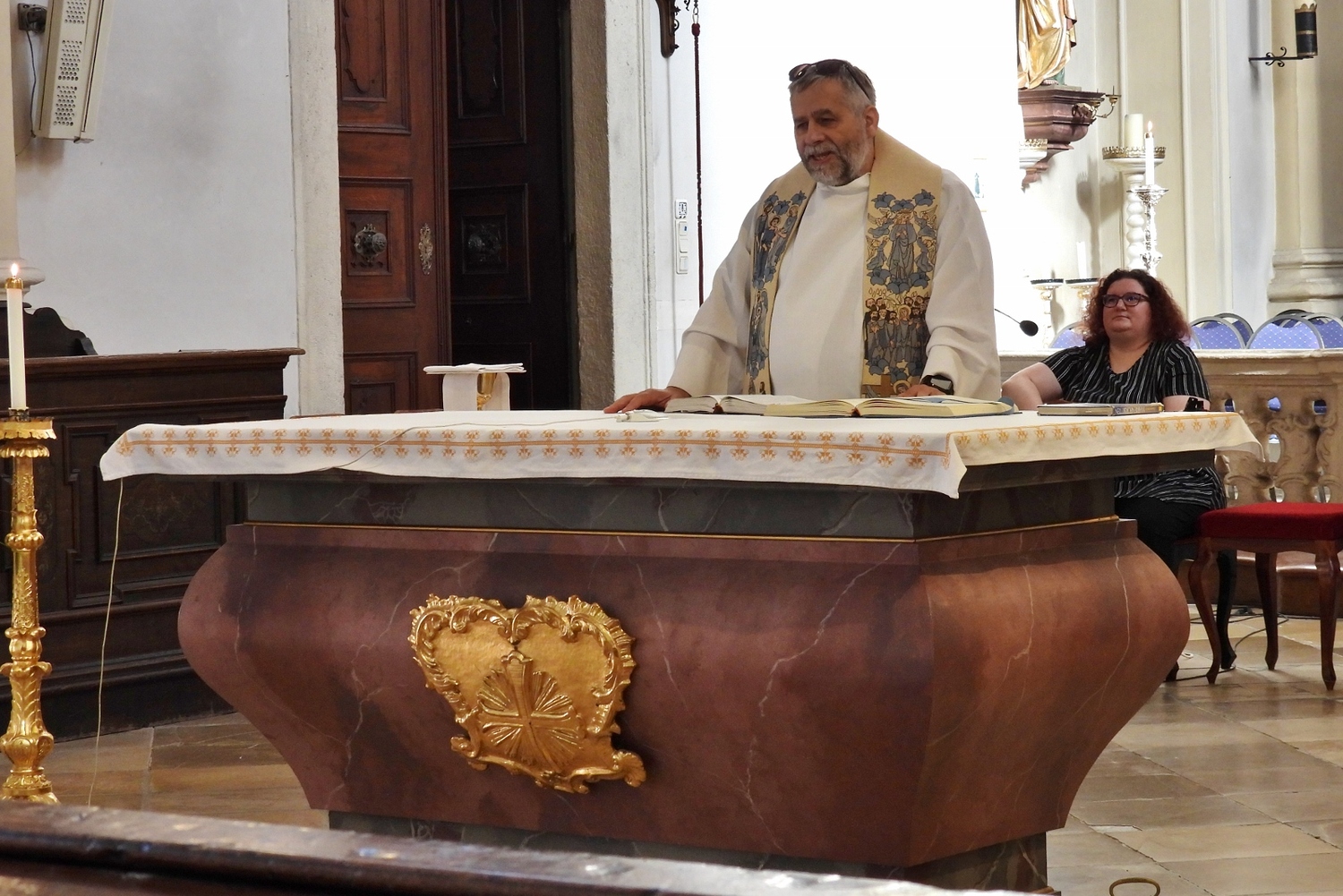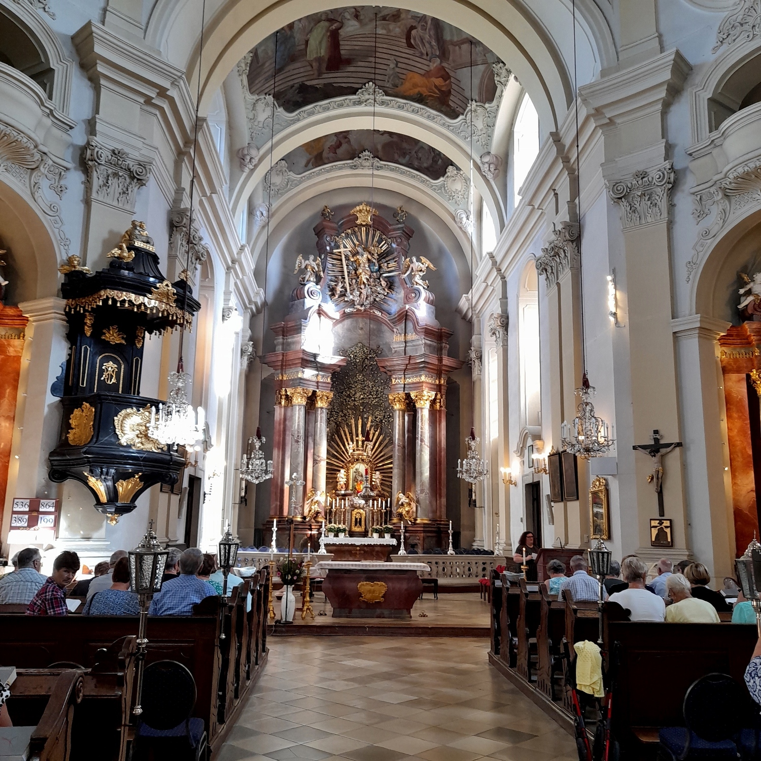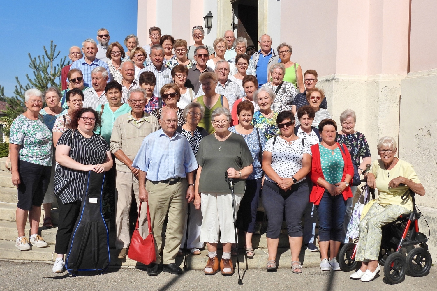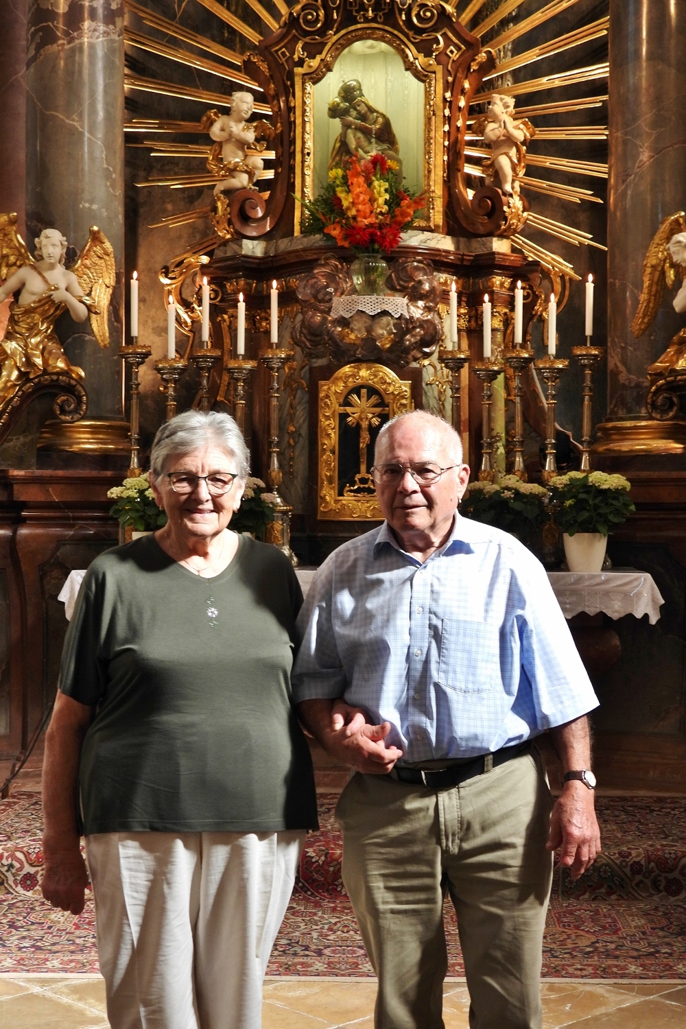 Während der Hinfahrt wurde der Rosenkranz gebetet und um 9 Uhr 30 in der Wallfahrtskirche mit P. Christian Gimbel die Heilige Messe gefeiert. Dabei erwähnte er auch, dass das Ehepaar Jamöck einander hier vor 60 Jahren das JA-Wort gegeben hat, und gratulierte ihnen zu diesem Jubelfest, welches sie in ca. 2 Monaten feiern werden.