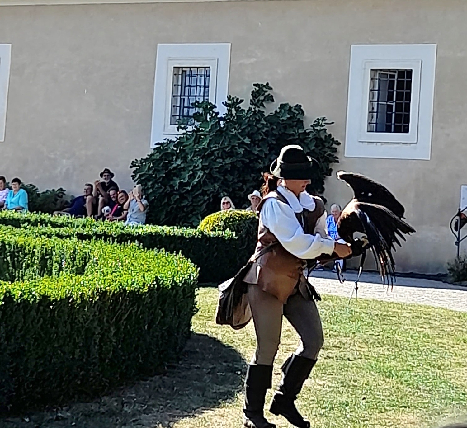 Von der darauf in der Falknerei stattgefundenen Greifvogelvorführung mit Informationen über die natürlichen Verhaltensweisen und Lebensräume der Falken, Adler, Geier und Uhus waren alle sehr begeistert.