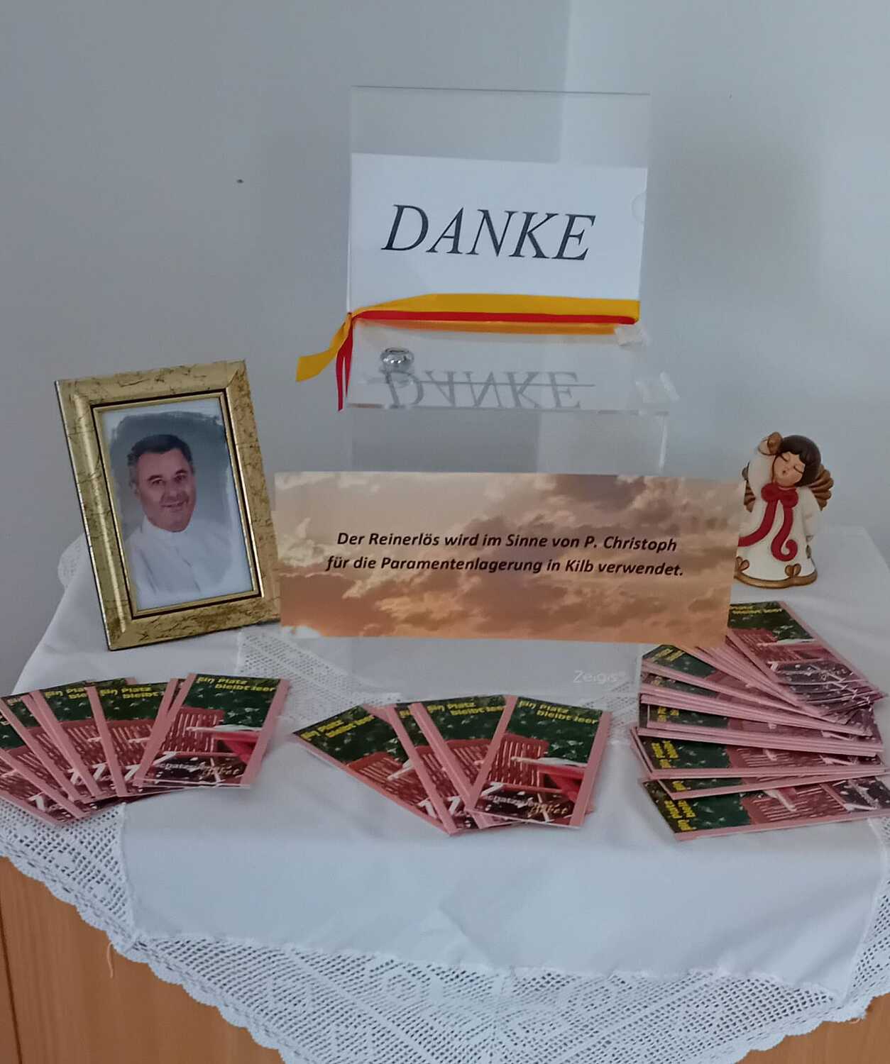 Der Reinerlös wird im Sinne von P. Christoph zur Paramentenlagerung in Kilb verwendet.