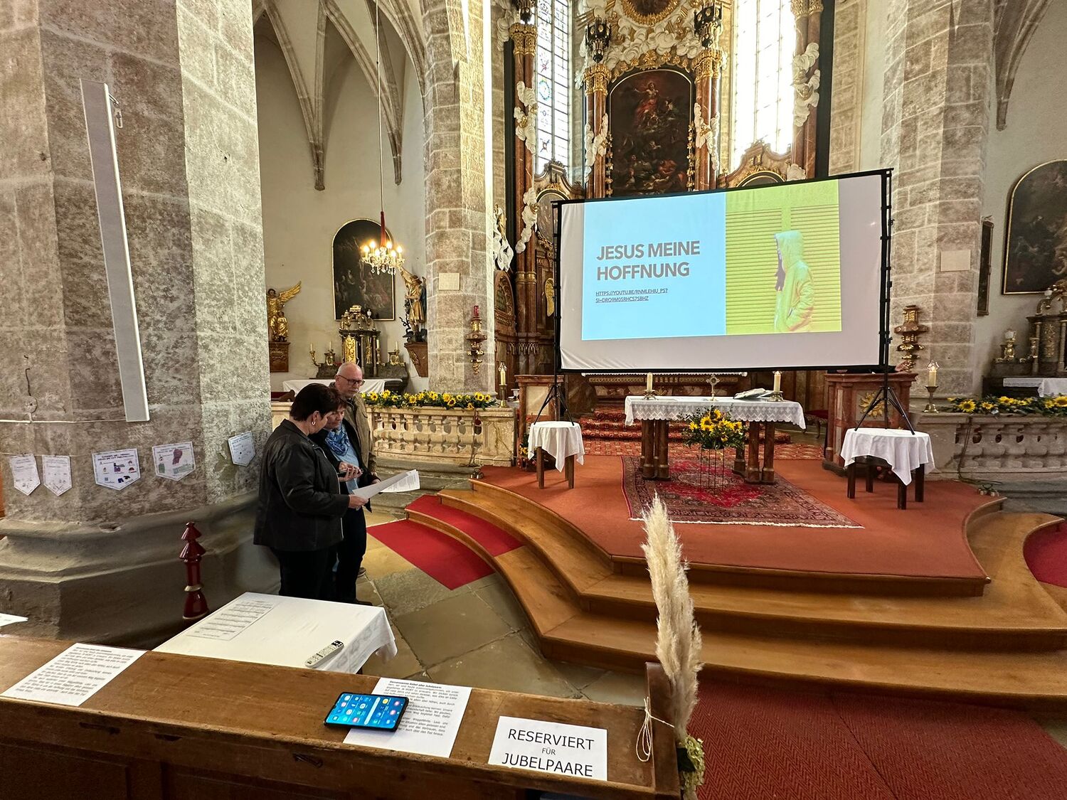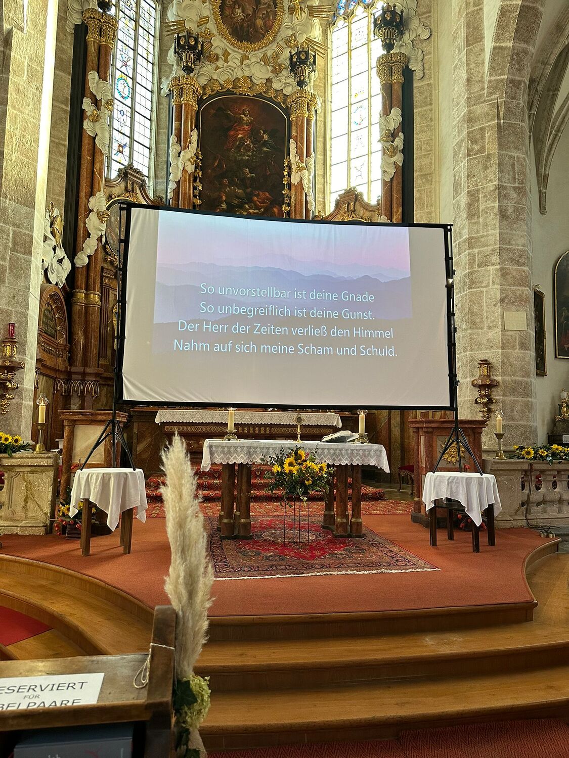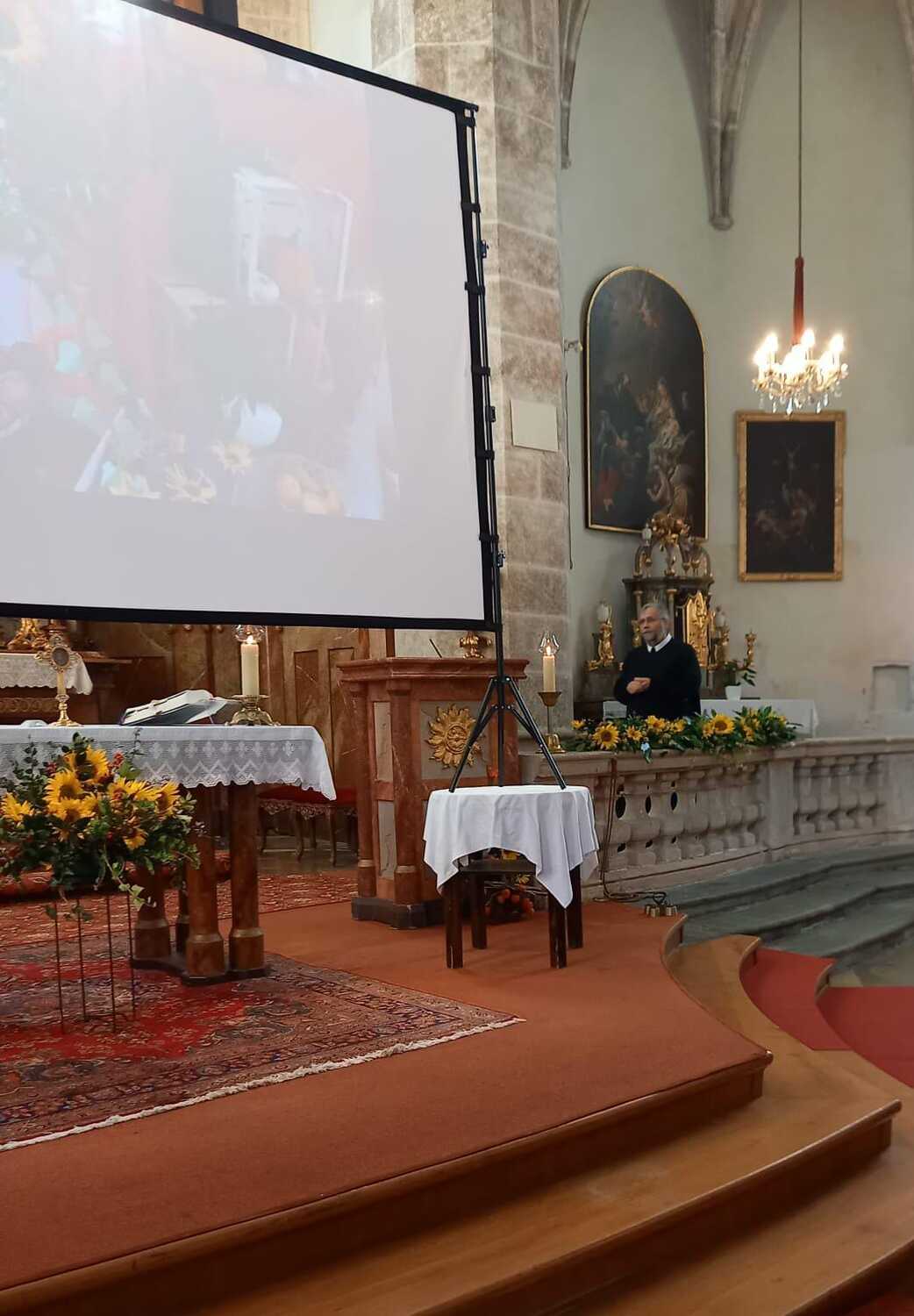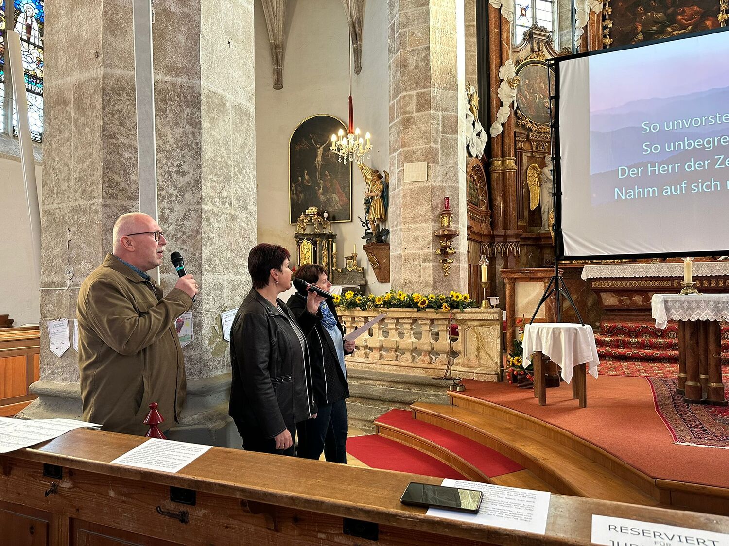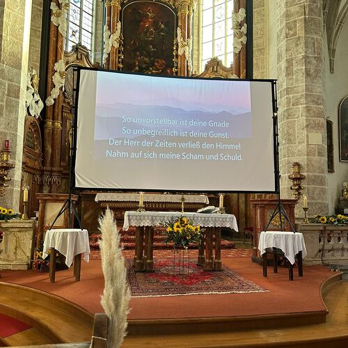 Besinnliche Gebete und 2 Lieder wurden in Karaokeversion auf einer Leinwand projiziert.