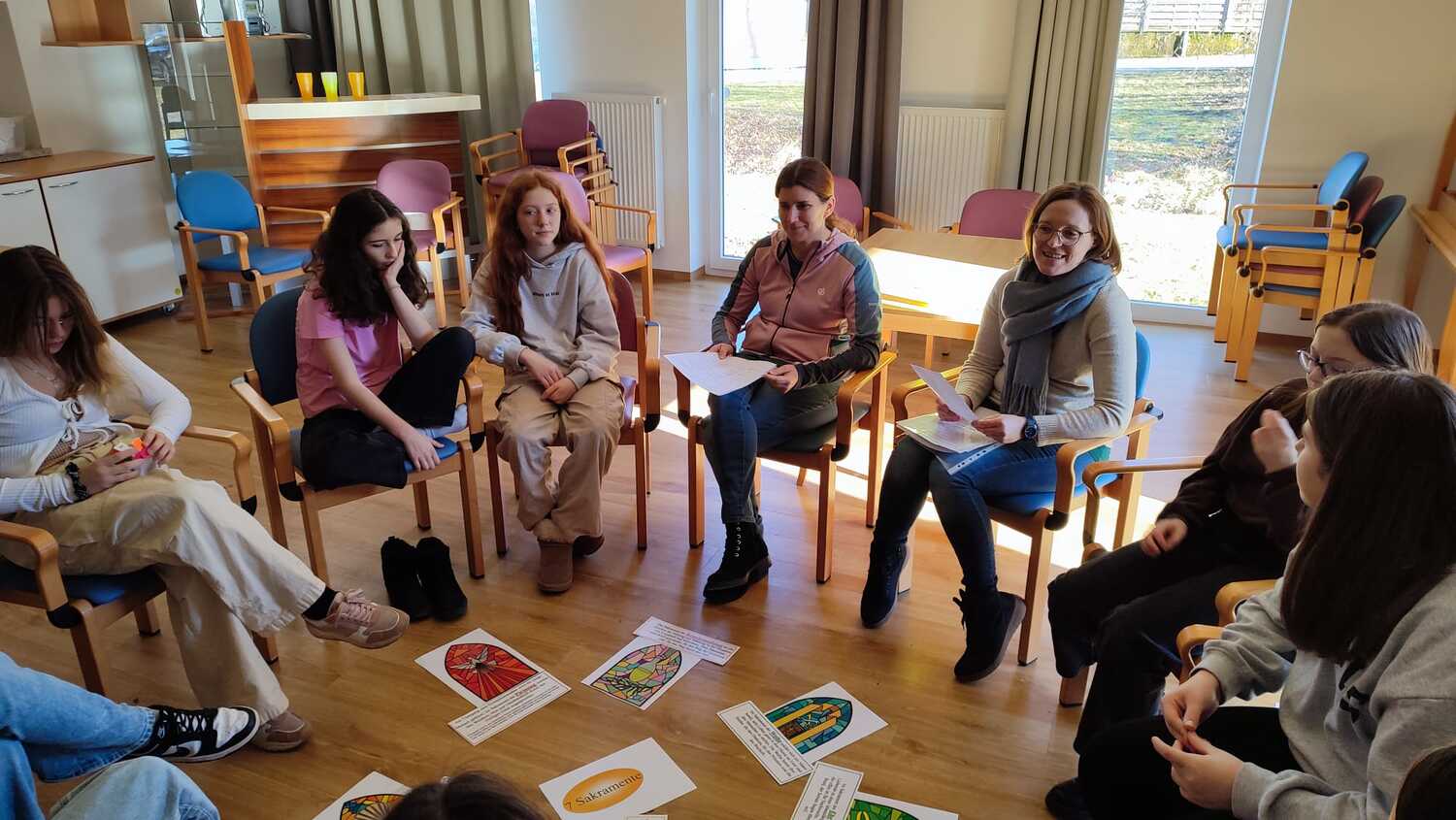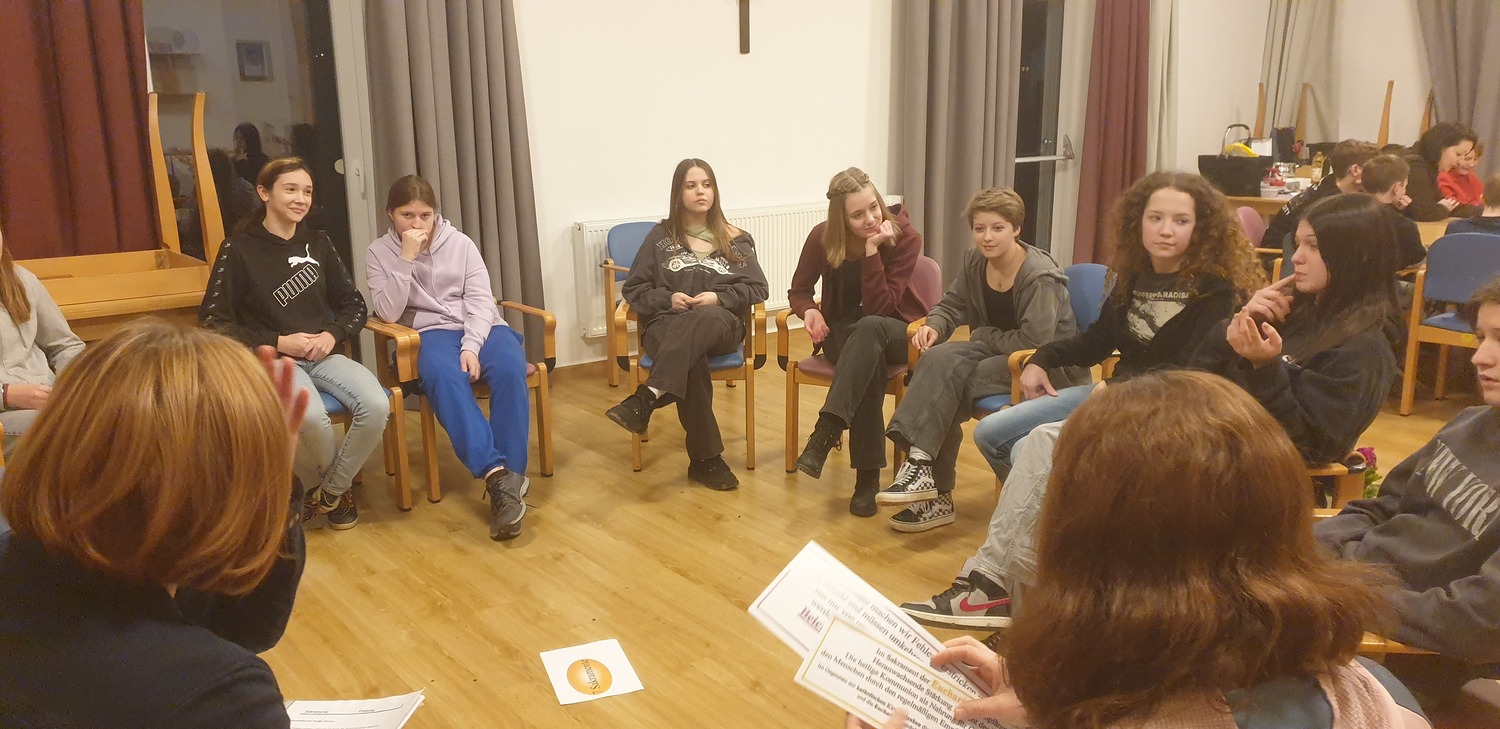 Die verschiedenen Workshops zu den Themen Firmung, Heiliger Geist, Sakramente und Eucharistie waren zweifellos ein Höhepunkt des Wochenendes. Unter der Anleitung unserer engagierten Firmbegleiterinnen tauschten die Jugendlichen ihre Gedanken aus, stellten Fragen und vertieften ihr Verständnis für die grundlegenden Elemente des katholischen Glaubens. Wenn wir eine Freundschaft pflegen, ist vieles bedeutsam. Die Jugendlichen sammelten dazu Begriffe wie Ehrlichkeit, Großzügigkeit, Versöhnung, Gastfreundlichkeit, miteinander Zeit verbringen. In den Teilen der hl. Messe fanden sie dieselben Elemente wieder, hier können wir unser Freundschaft zu Gott und unseren Glaubenskolleg*innen feiern.