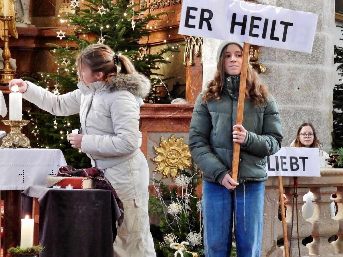 Die Firmlinge, die das Wochenende im Pfarrtreff verbrachten, waren ebenfalls Teil dieser bewegenden Messe und präsentierten mit stolzer Begeisterung das Lied "Rückenwind", das sie am Vortag einstudiert hatten.
