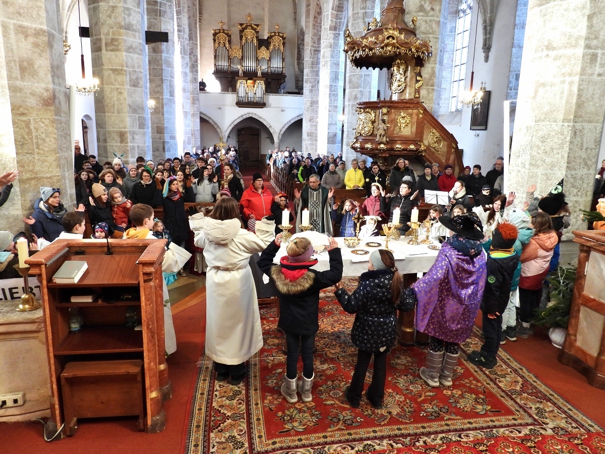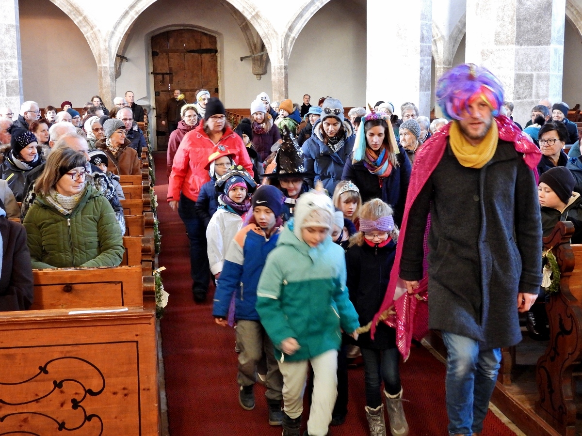 Die Atmosphäre war besonders, als die Kinder ihre Kostüme präsentierten und gespannt darauf warteten, was diese Messe bereithielt. Mit schwungvollen Klängen und mitreißenden Liedern füllten sie die Kirche mit Freude und Begeisterung, und wir alle wurden von ihrer Energie mitgerissen.