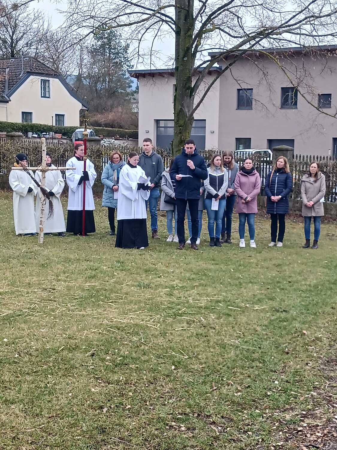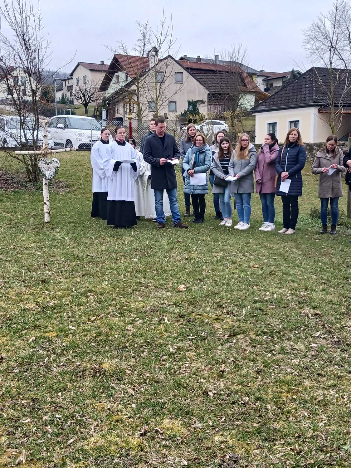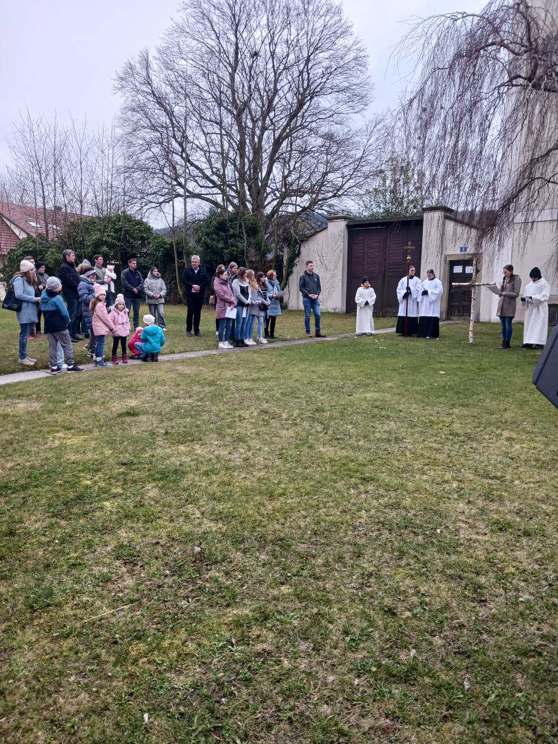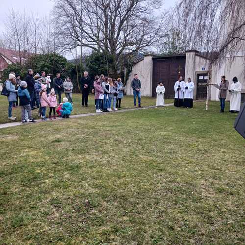 Aufgrund der guten Witterung konnte der Kreuzweg sogar draußen im Pfarrgarten stattfinden. Mit großer Freude durften wir eine große Schar mitfeiernder Besucher begrüßen. Den Pfarrkaffee der Pfarre nutzten anschließend viele Besucher für ein gemütliches Beisammensein und Ausklang der Kreuzwegandacht. Dankeschön fürs Dabeisein und Mitbeten!