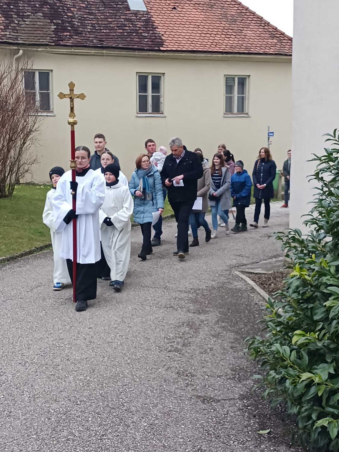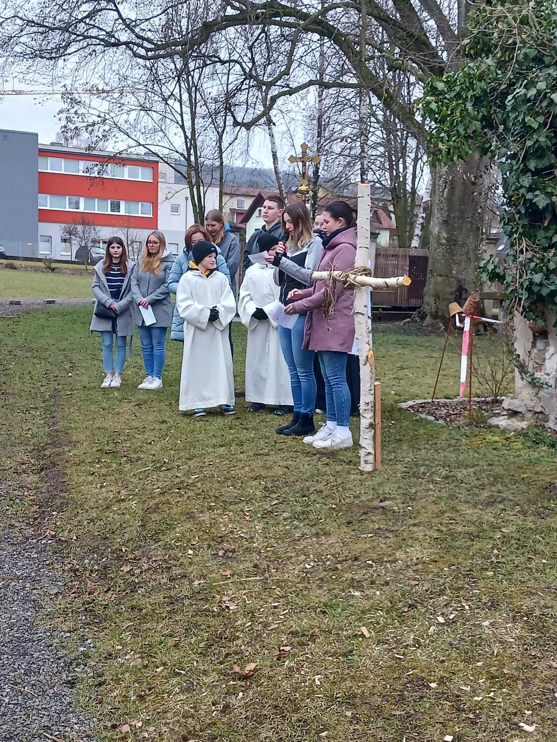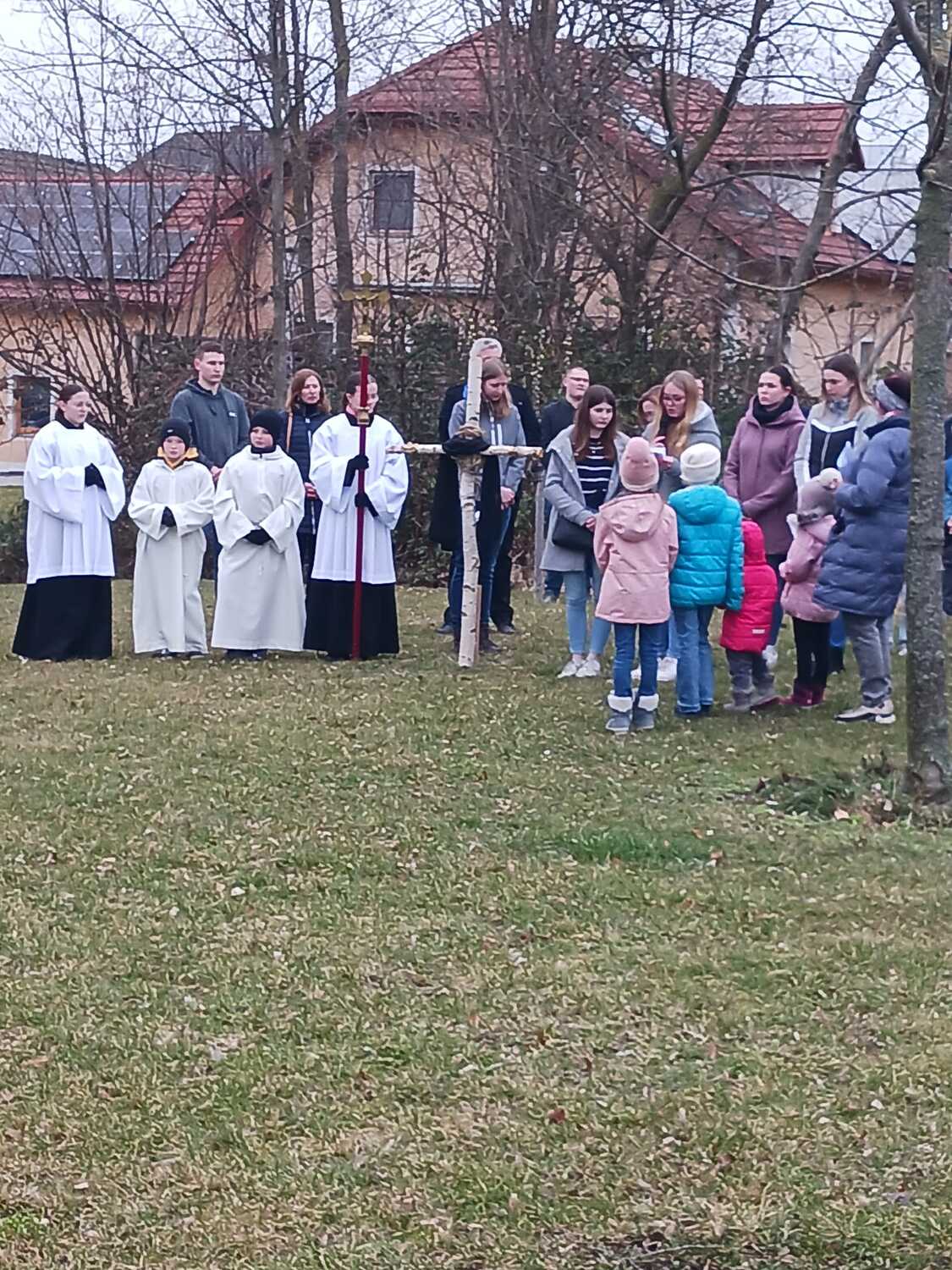 Aufgrund der guten Witterung konnte der Kreuzweg sogar draußen im Pfarrgarten stattfinden. Mit großer Freude durften wir eine große Schar mitfeiernder Besucher begrüßen. Den Pfarrkaffee der Pfarre nutzten anschließend viele Besucher für ein gemütliches Beisammensein und Ausklang der Kreuzwegandacht. Dankeschön fürs Dabeisein und Mitbeten!