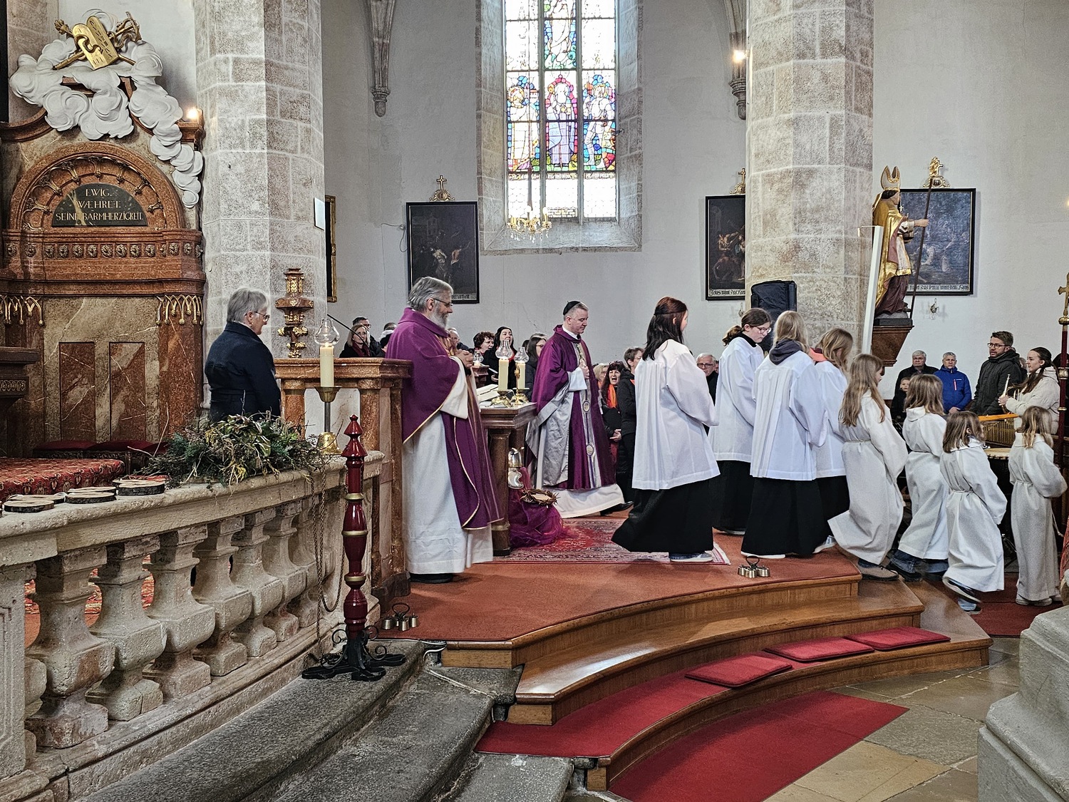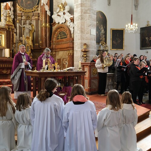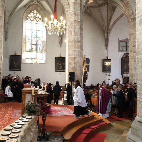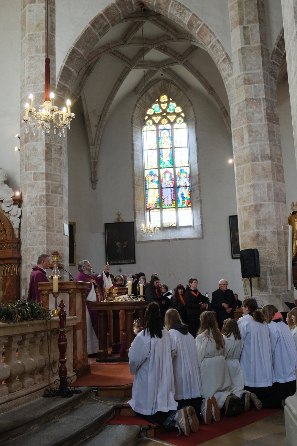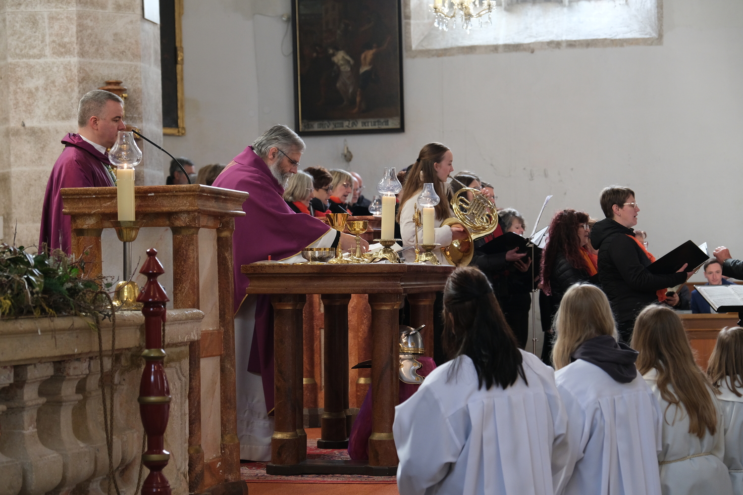 Am heutigen Sonntag (23.3.2025) durften wir in der Pfarrkirche Kilb einen besonderen Gast begrüßen: Abt Patrick Schöder vom Stift Göttweig besuchte uns zur Heiligen Messe um 9:30 Uhr. In festlicher Atmosphäre feierten wir gemeinsam den Gottesdienst, der durch die mitreißenden Gesänge der Singgemeinschaft Ruprechtshofen und St. Leonhard bereichert wurde. Mit afrikanischen Liedern brachten sie eine besondere musikalische Note in die Feier und sorgten für eine feierliche und zugleich lebendige Stimmung.