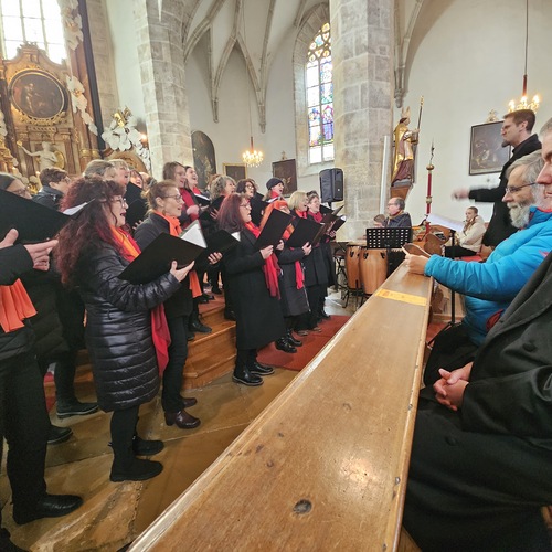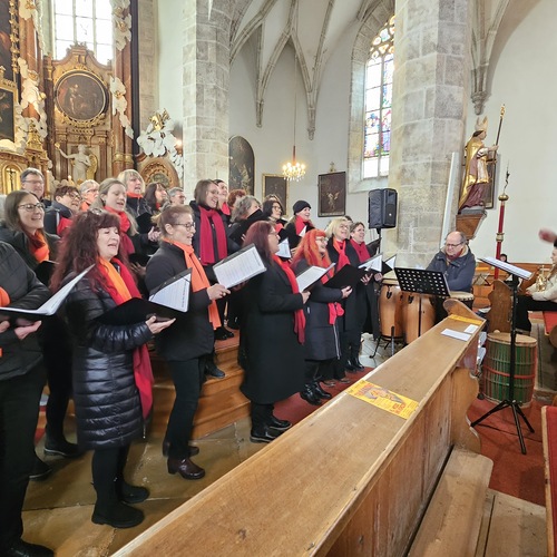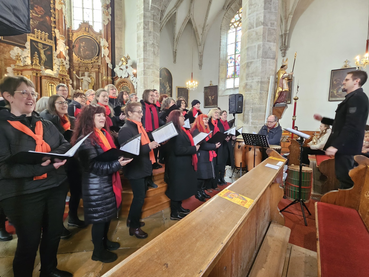Im Anschluss an die Messe lud die Singgemeinschaft zu einem Konzert ein, bei dem schwungvolle afrikanische Melodien das Publikum begeisterten. Die mitreißenden Klänge und der spürbare Enthusiasmus der Sängerinnen und Sänger sorgten für eine wunderbare Atmosphäre. Der Reinerlös dieser Veranstaltung kommt der dringend notwendigen Turmsanierung unserer Pfarrkirche zugute – ein herzliches Dankeschön an alle Mitwirkenden und Unterstützer!