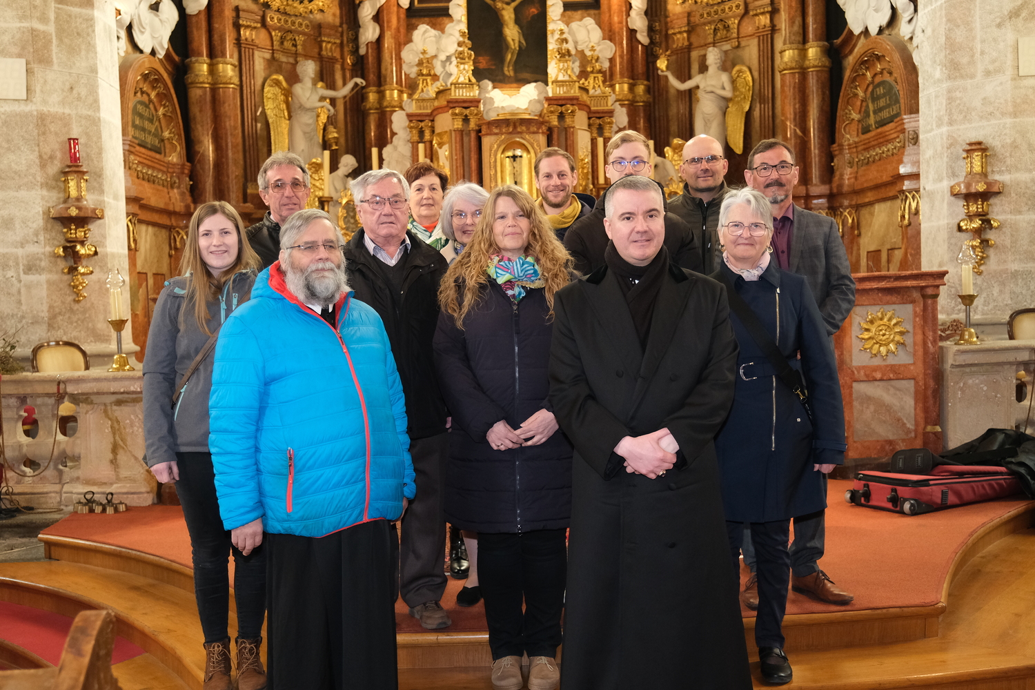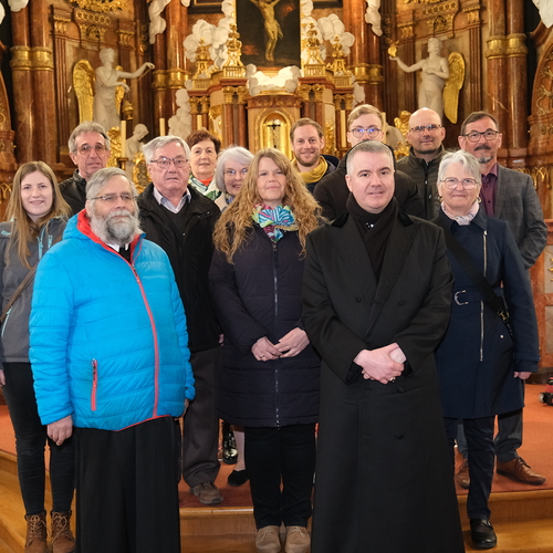 Abt Patrick zeigte sich bei seinem Besuch in unserer Pfarre sehr erfreut und nahm sich im Anschluss noch Zeit für ein gemeinsames Gruppenfoto mit dem Pfarrgemeinderat, dem Pfarrkirchenrat sowie Pfarrer P. Christian.