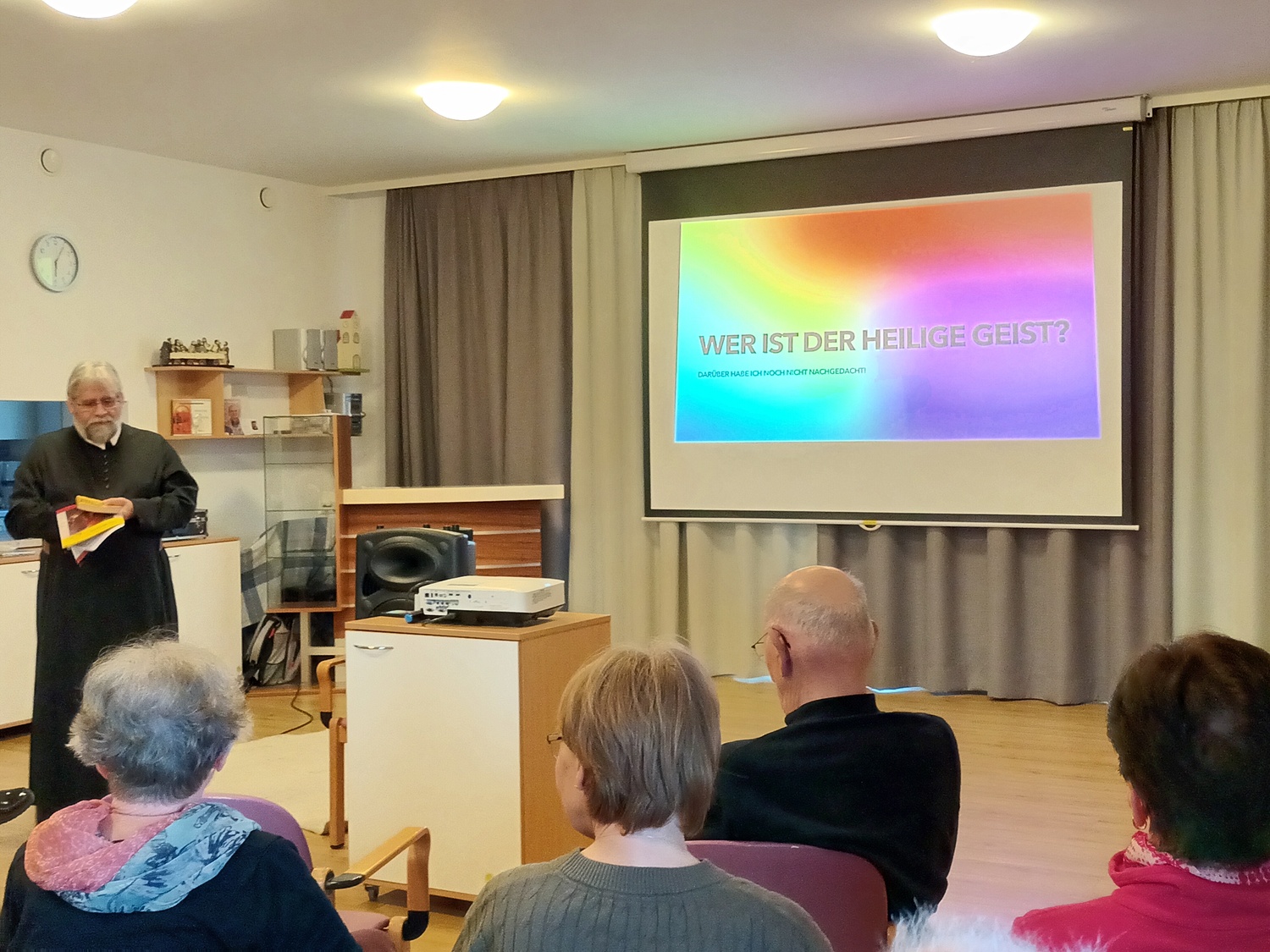 – Ein schwierig begreifbares Thema brachte P. Christian Gimbel mit Bildern, Filmen, Liedern und Beispielen den zahlreichen Gästen am 3. April 2025 näher. Auch nach der Veranstaltung diskutierten noch viele ausführlich über das Wesen des Heiligen Geistes. Es war ein inspirierender und aufschlussreicher Abend.