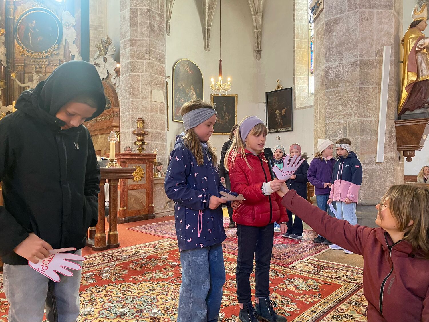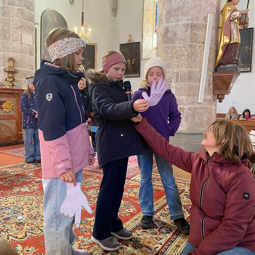 In der Familienmesse am 6.4. 2025 zeigten uns die Kinder, wie wir Situationen anders lösen könnten als zu verurteilen, indem wir jedem die Chance auf einen Neuanfang geben. Denn: jeder macht mal Fehler! Darum wollen wir tolerant miteinander umgehen und uns gegenseitig unterstützen, den richtigen Weg einzuschlagen – gemeinsam geht es am besten!