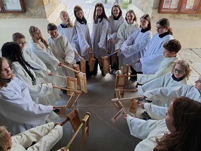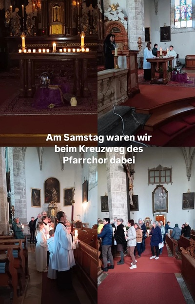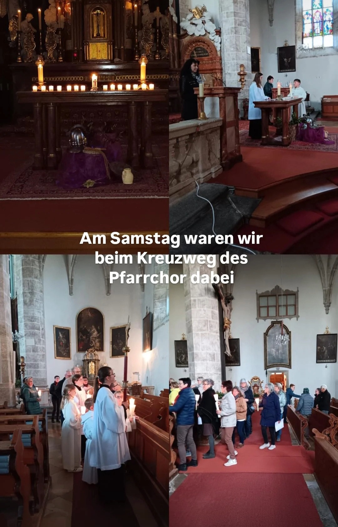 Rund um die Osterzeit war bei uns viel los. Beim Abendkreuzweg des Pfarrchors durften wir aktiv mitwirken – ein bewegender Moment für uns alle. Mit dem Palmsonntag begann für uns eine besonders intensive Zeit. Ab Gründonnerstag verbrachten wir viele gemeinsame Stunden im Pfarrtreff: Wir waren mit den Ratschen unterwegs, haben miteinander gespielt, gelacht und uns auf die Kar- und Ostertage vorbereitet – besonders auf die Feiern der Liturgie.