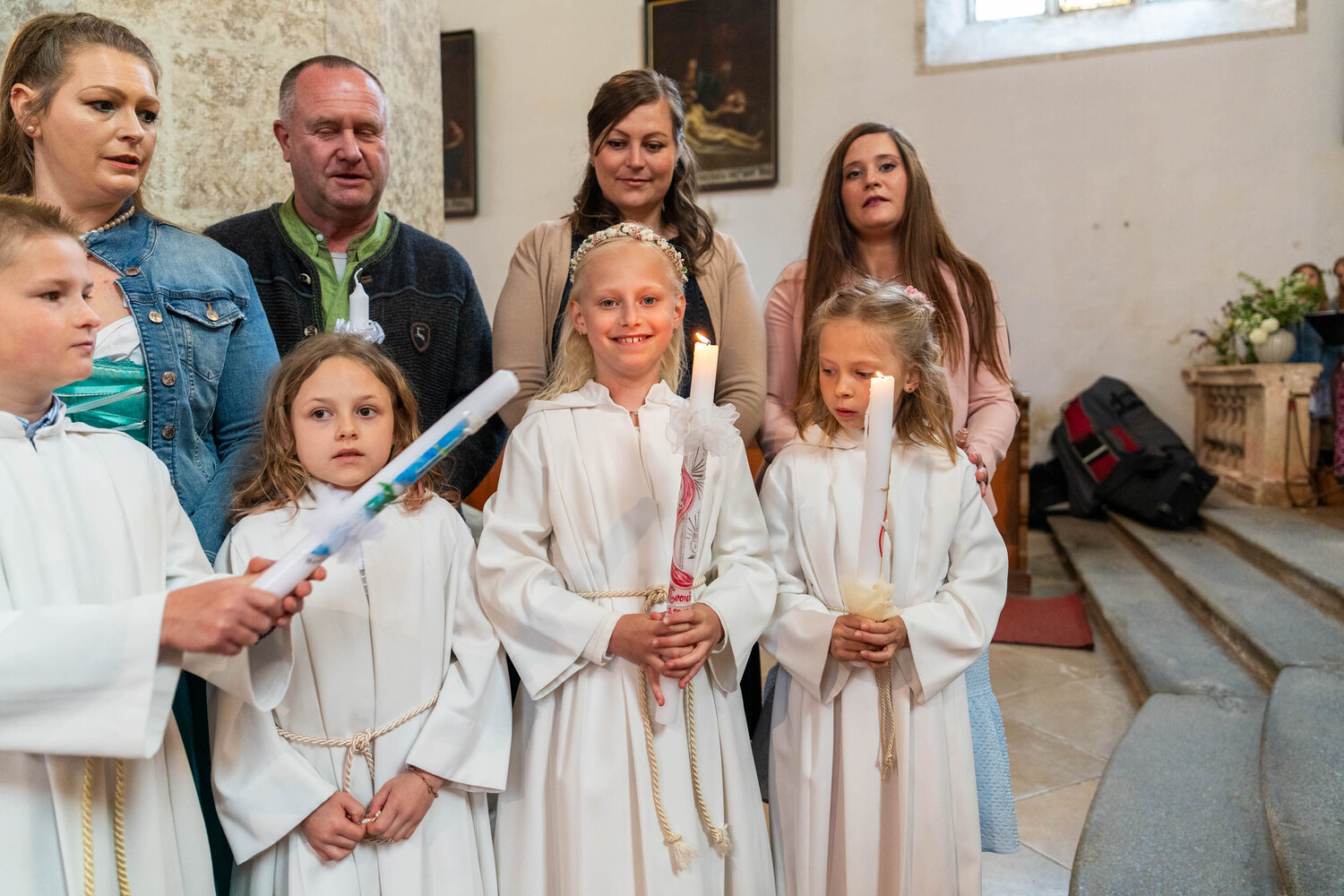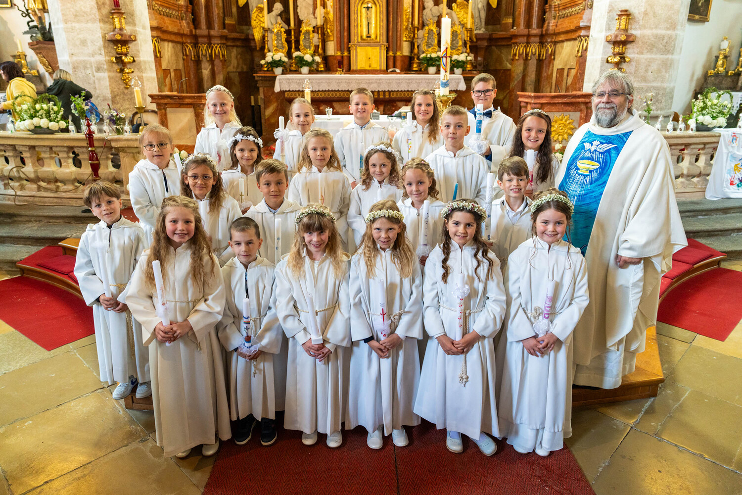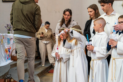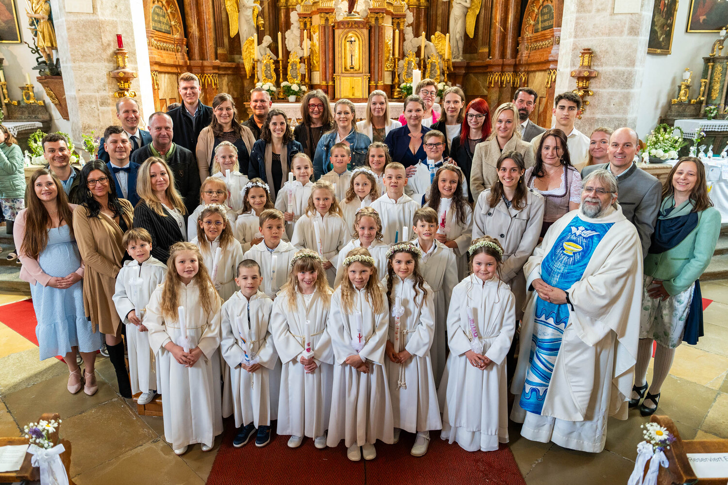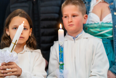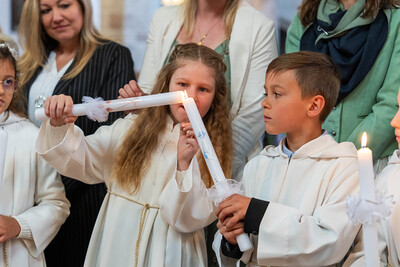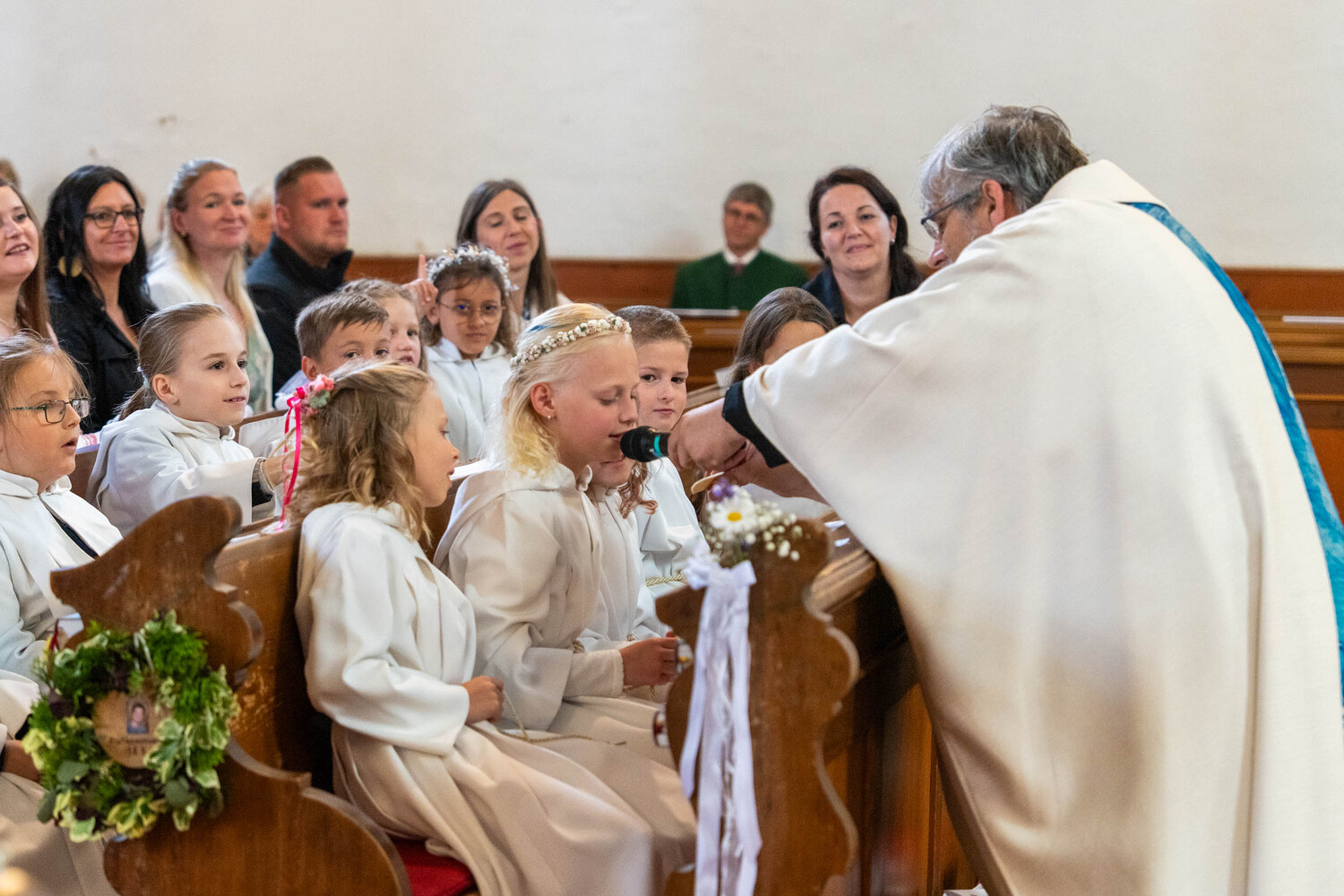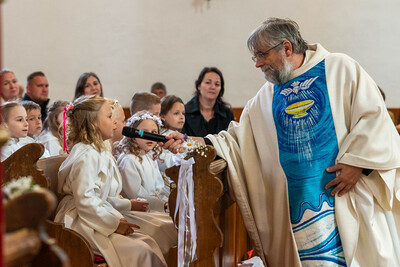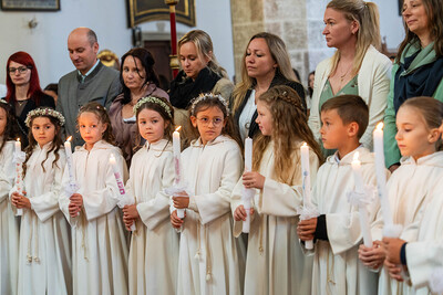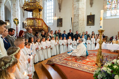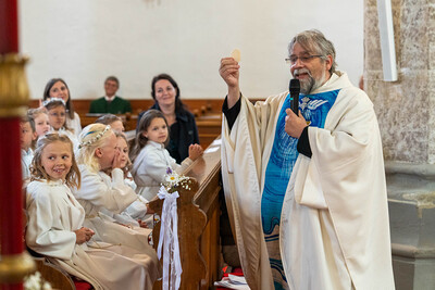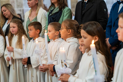 Für ein Mädchen war dieser Tag sogar doppelt besonders: Bevor es zum ersten Mal die heilige Kommunion empfing, wurde es in einem berührenden Moment durch die Taufe in die Gemeinschaft der Kirche aufgenommen – ein Symbol des Neubeginns und des tiefen Vertrauens in Gottes Begleitung.