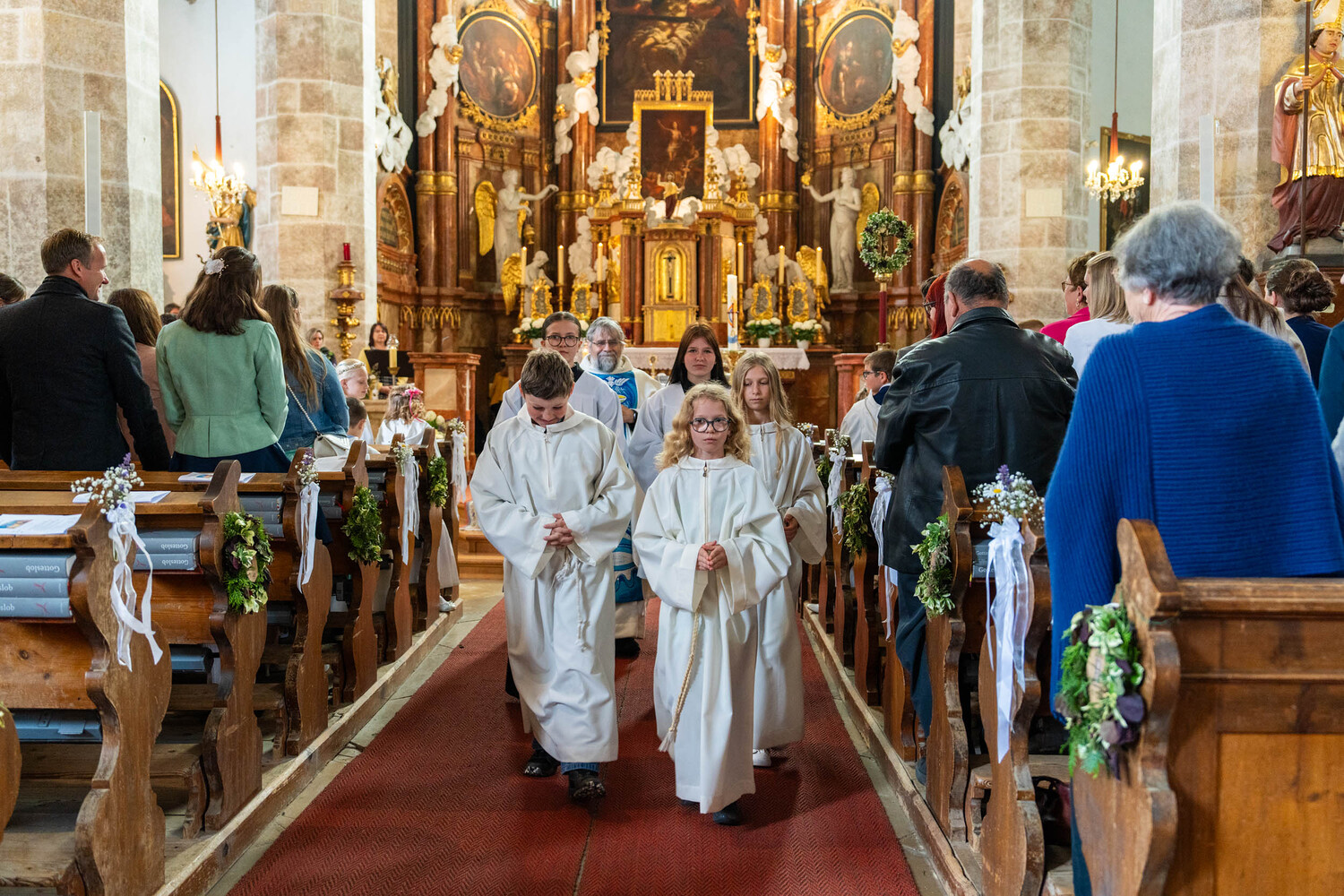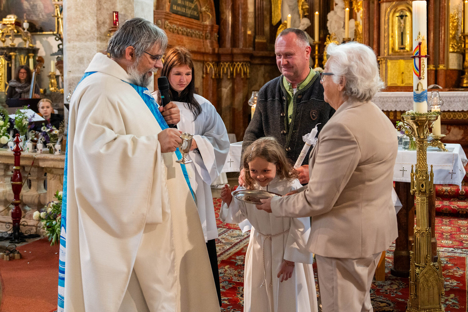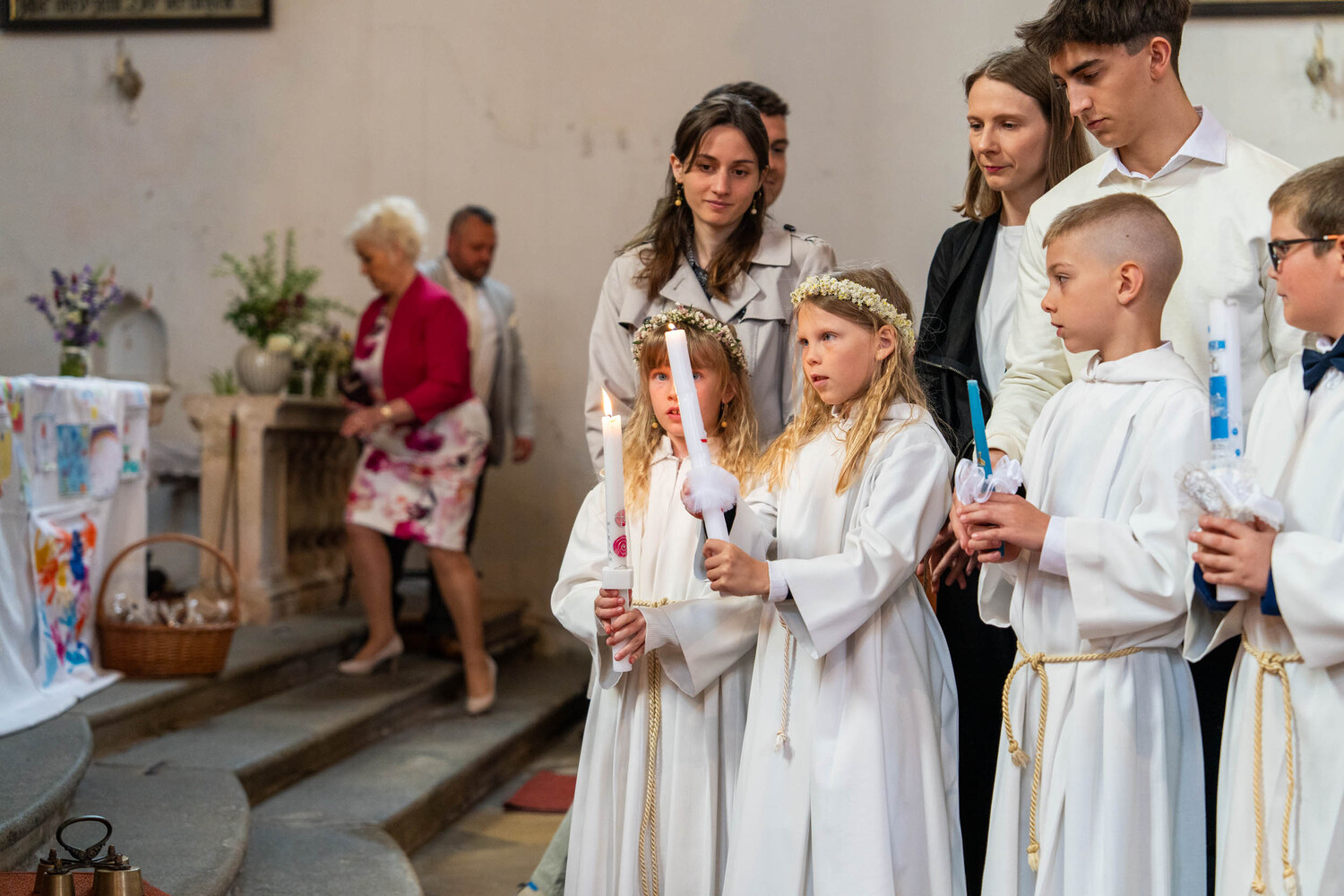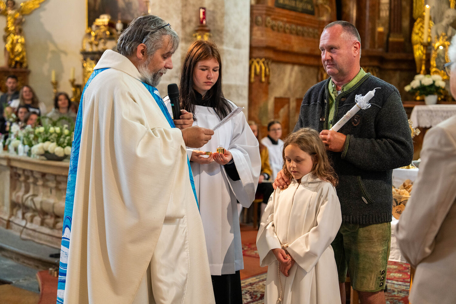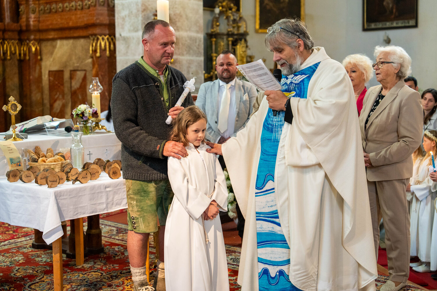 Für ein Mädchen war dieser Tag sogar doppelt besonders: Bevor es zum ersten Mal die heilige Kommunion empfing, wurde es in einem berührenden Moment durch die Taufe in die Gemeinschaft der Kirche aufgenommen – ein Symbol des Neubeginns und des tiefen Vertrauens in Gottes Begleitung.