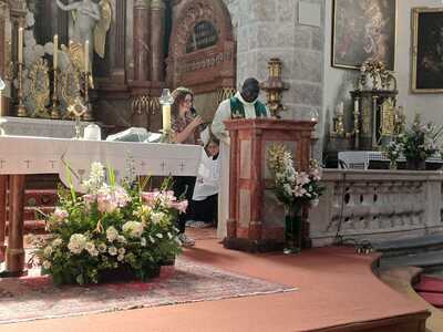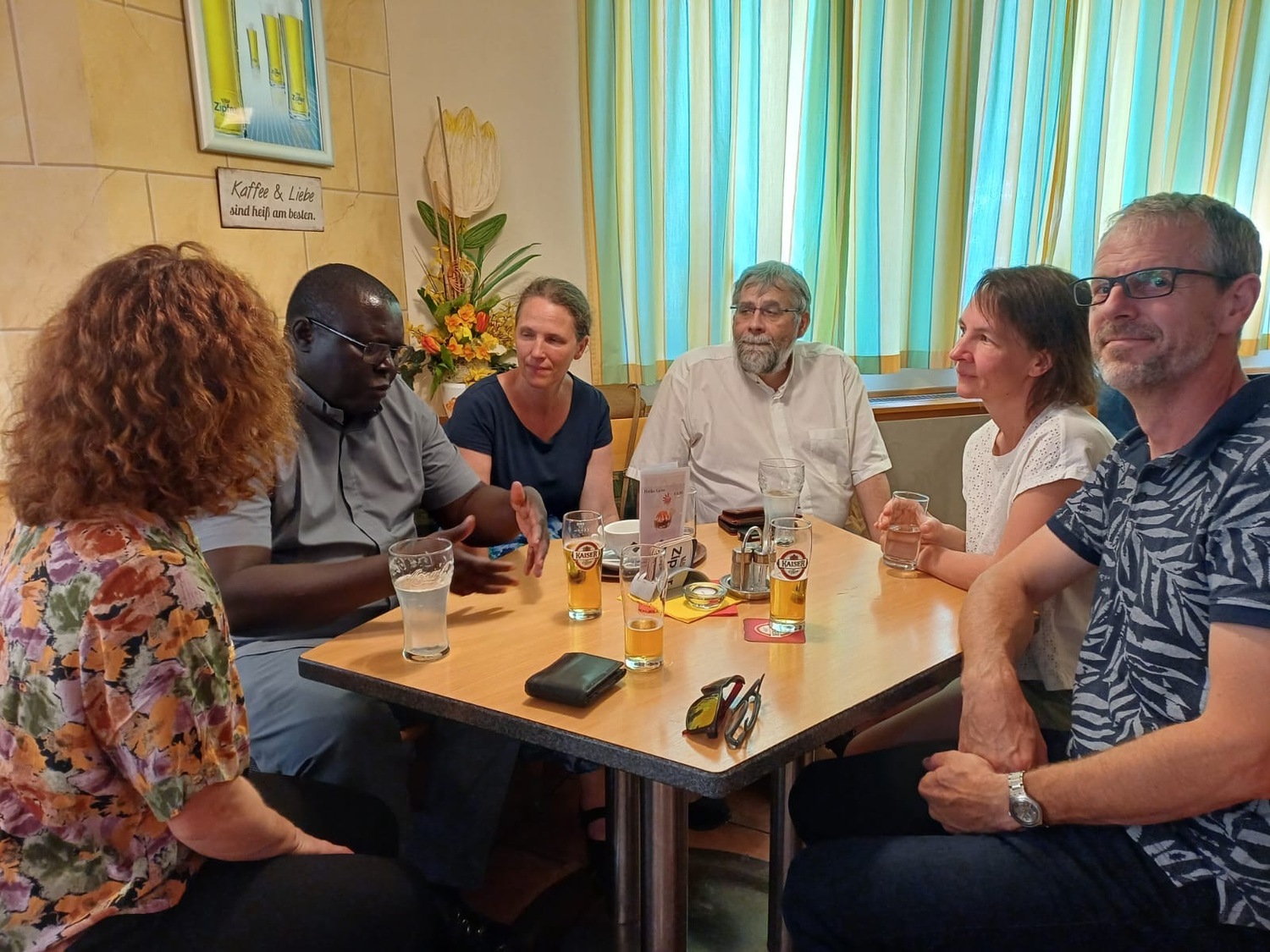 Frau Christiane Gaar, die Caritas-Projektreferentin für den Senegal, übersetzte für die Kirchenbesucher alles ins Deutsche. Am Ende der Predigt beantwortete Abbe Bertin Sagna auch Fragen, die ihm P. Christian stellte.