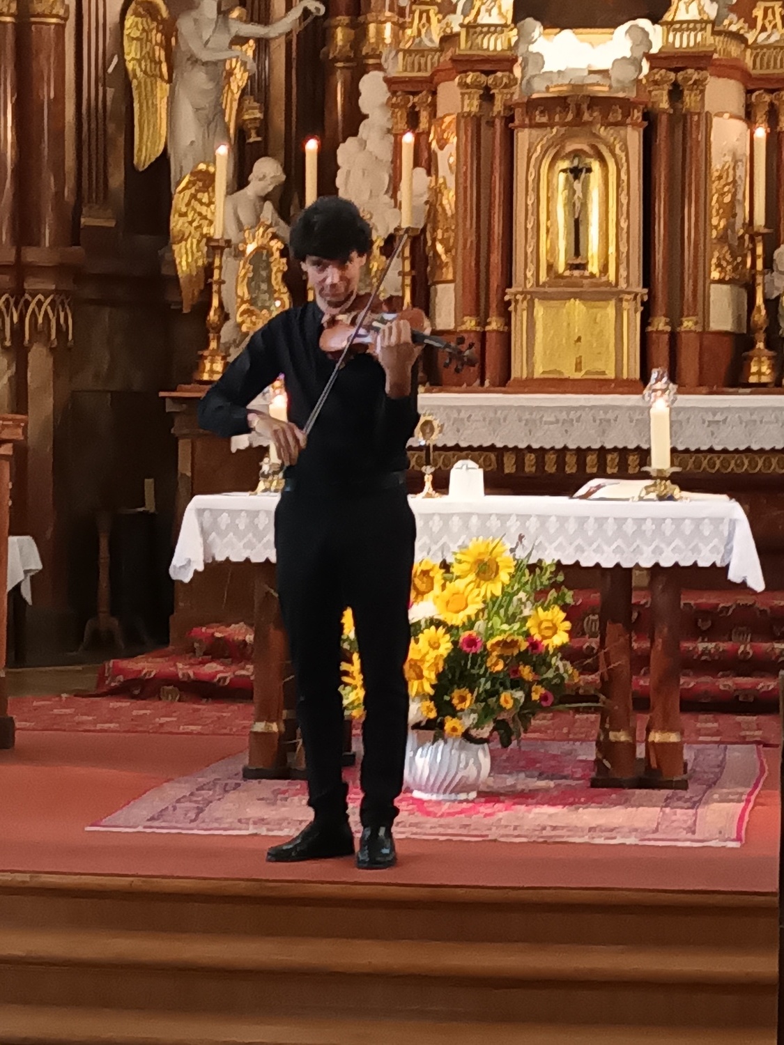 In Kilb gestaltete er die Vorabendmesse mit und beschließt den Abend mit einem fulminanten Violin- und Orgelkonzert. Werke von Bach, Paganini und Liszt wurden von ihm virtuos und komplett auswendig vorgetragen. Pater Johannes Paul aus Göttweig organisierte das Konzert im Vorfeld und erklärte auch die Stücke während des Konzerts. Danke für dieses besondere Erlebnis!