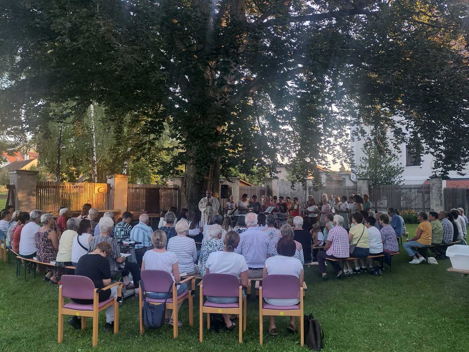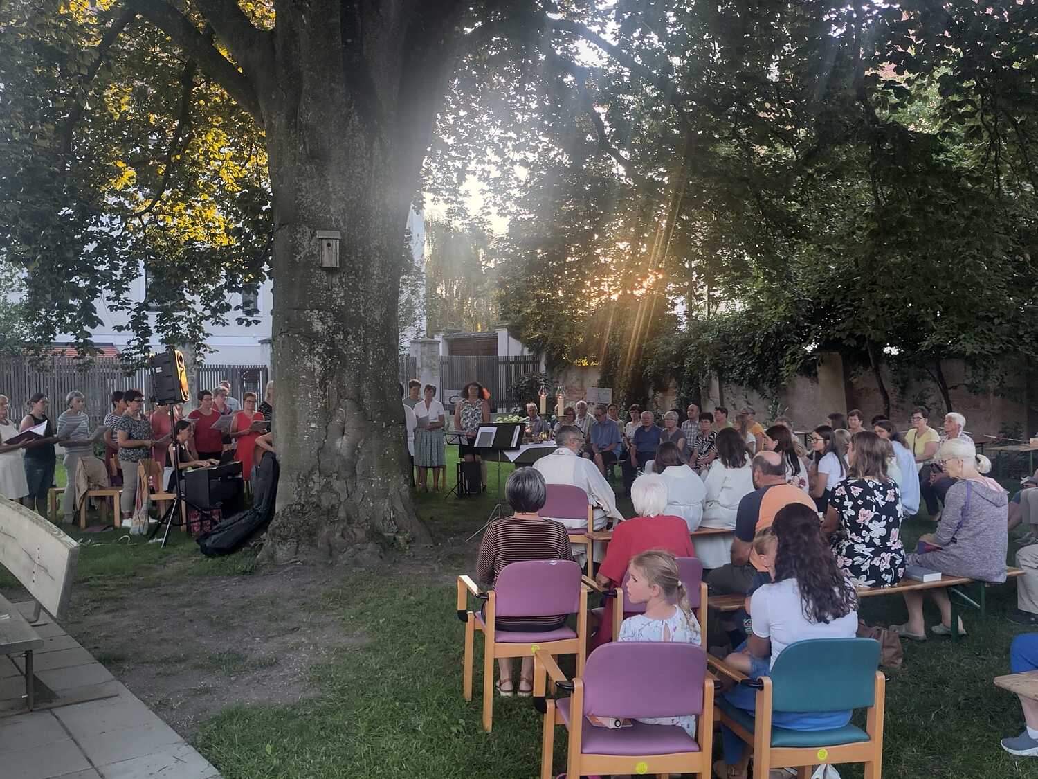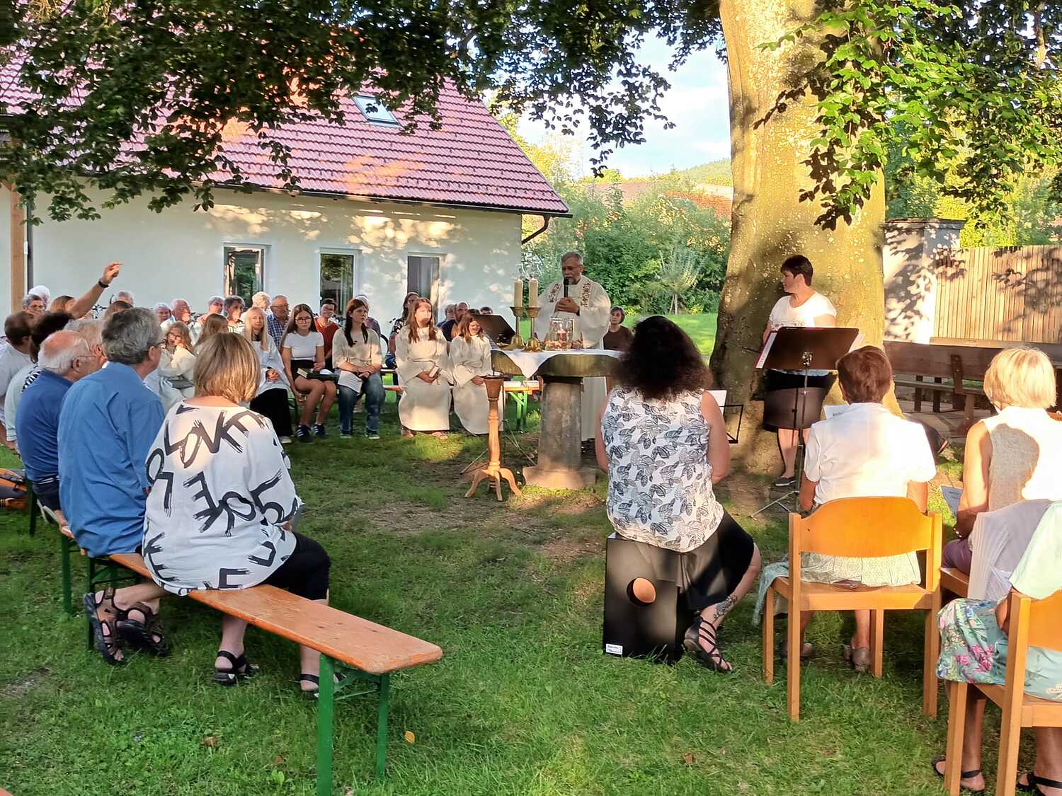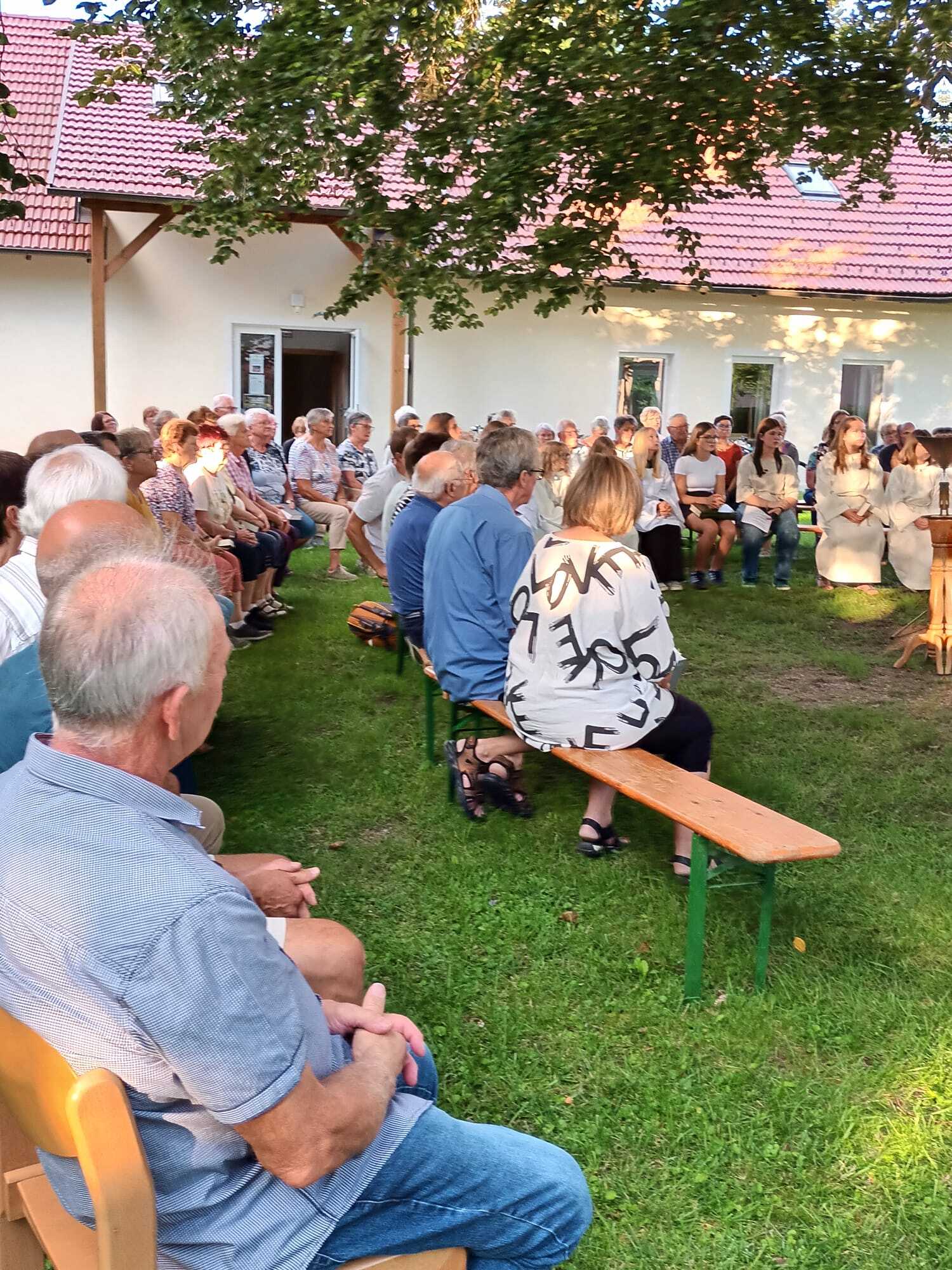 Bei herrlichem Wetter folgten an die 60 Personen dieser Einladung und feierten gemeinsam im wunderschönen Pfarrgarten „am himmlischen Platzl“.