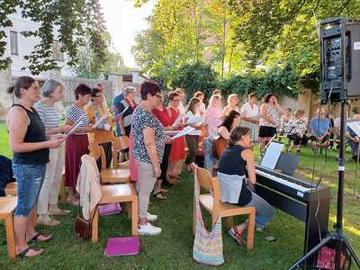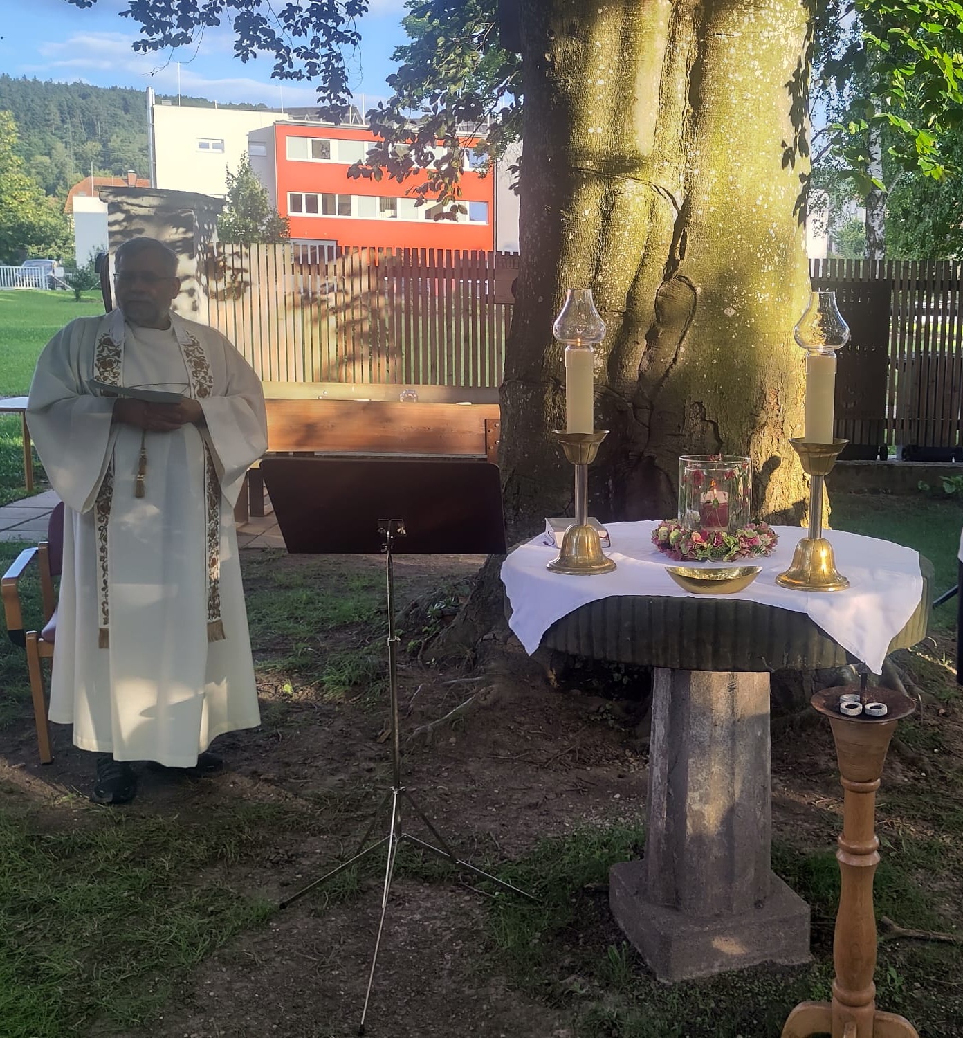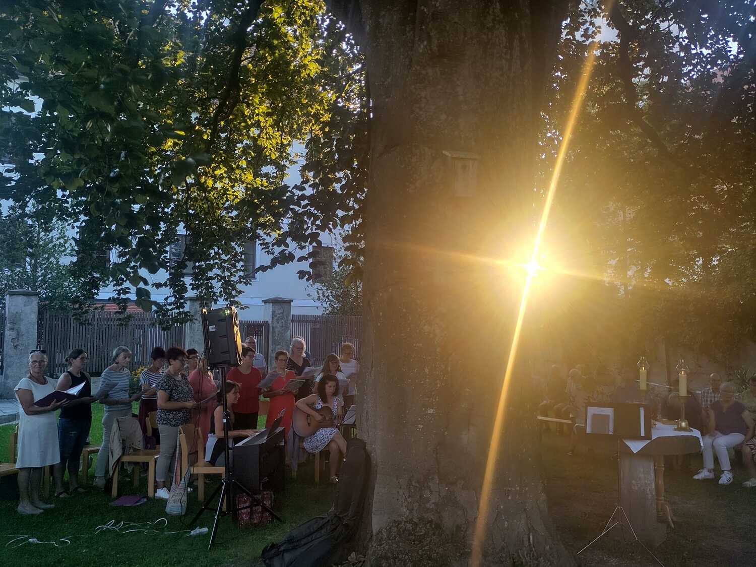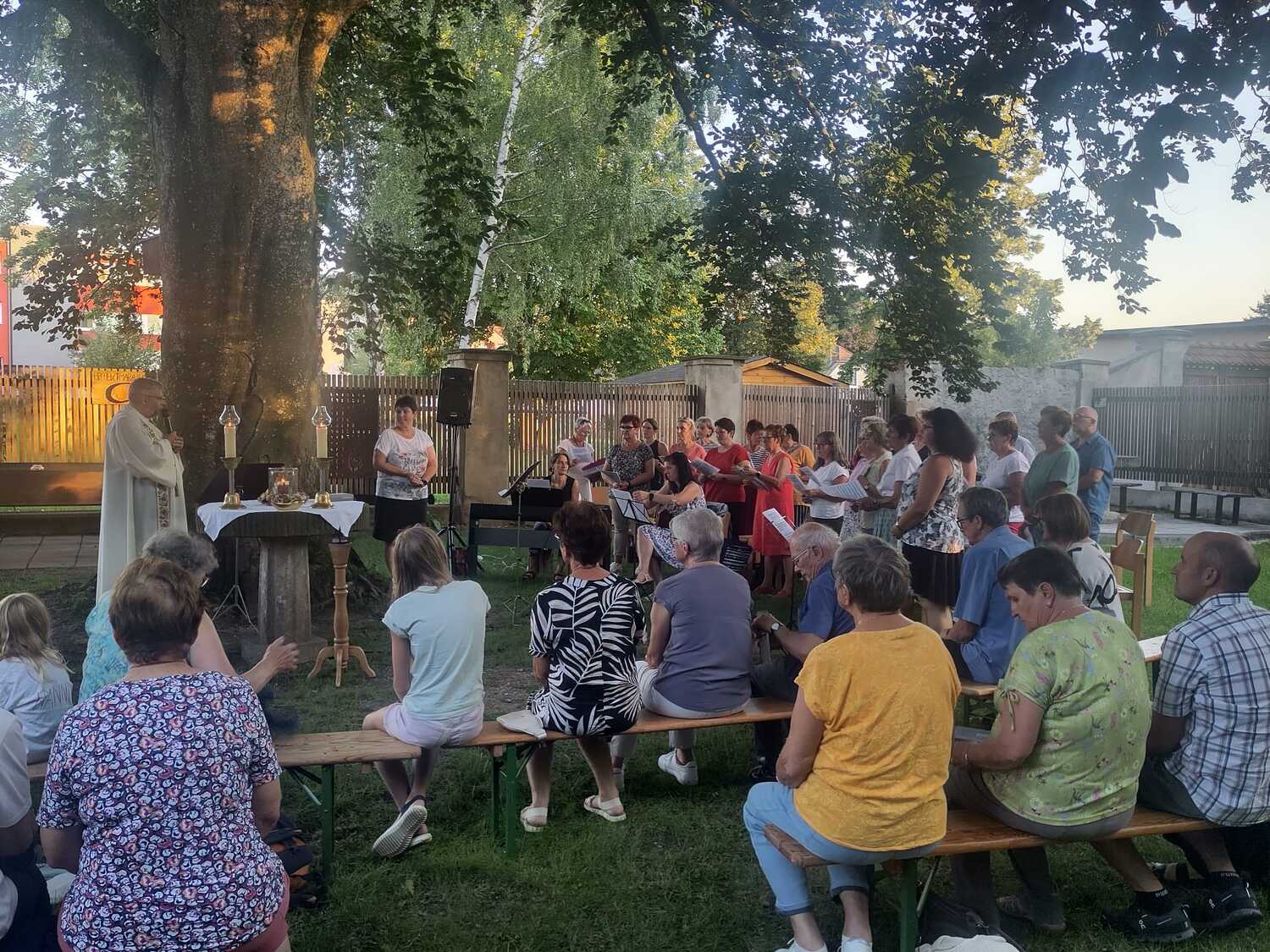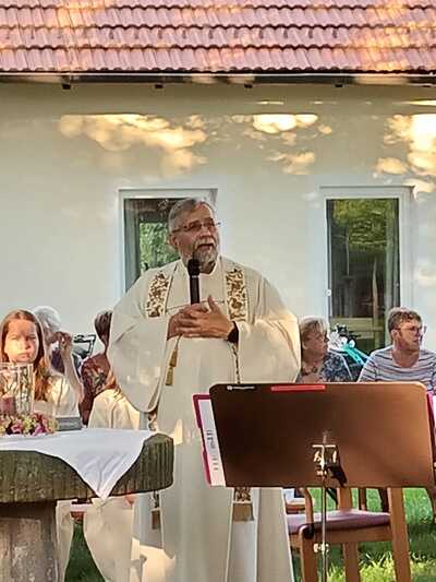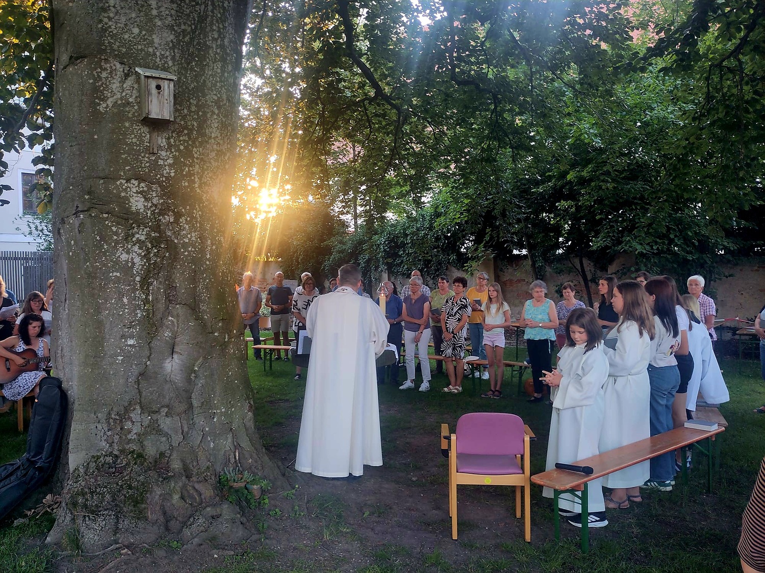 Bei herrlichem Wetter folgten an die 60 Personen dieser Einladung und feierten gemeinsam im wunderschönen Pfarrgarten „am himmlischen Platzl“.