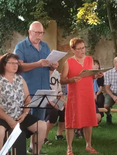 Gabriele Gonaus und Bernhard Teufl trugen Psalmen während des Rituals vor, die vom Pfarrchor musikalisch begleitet wurden.