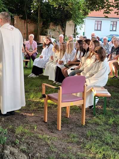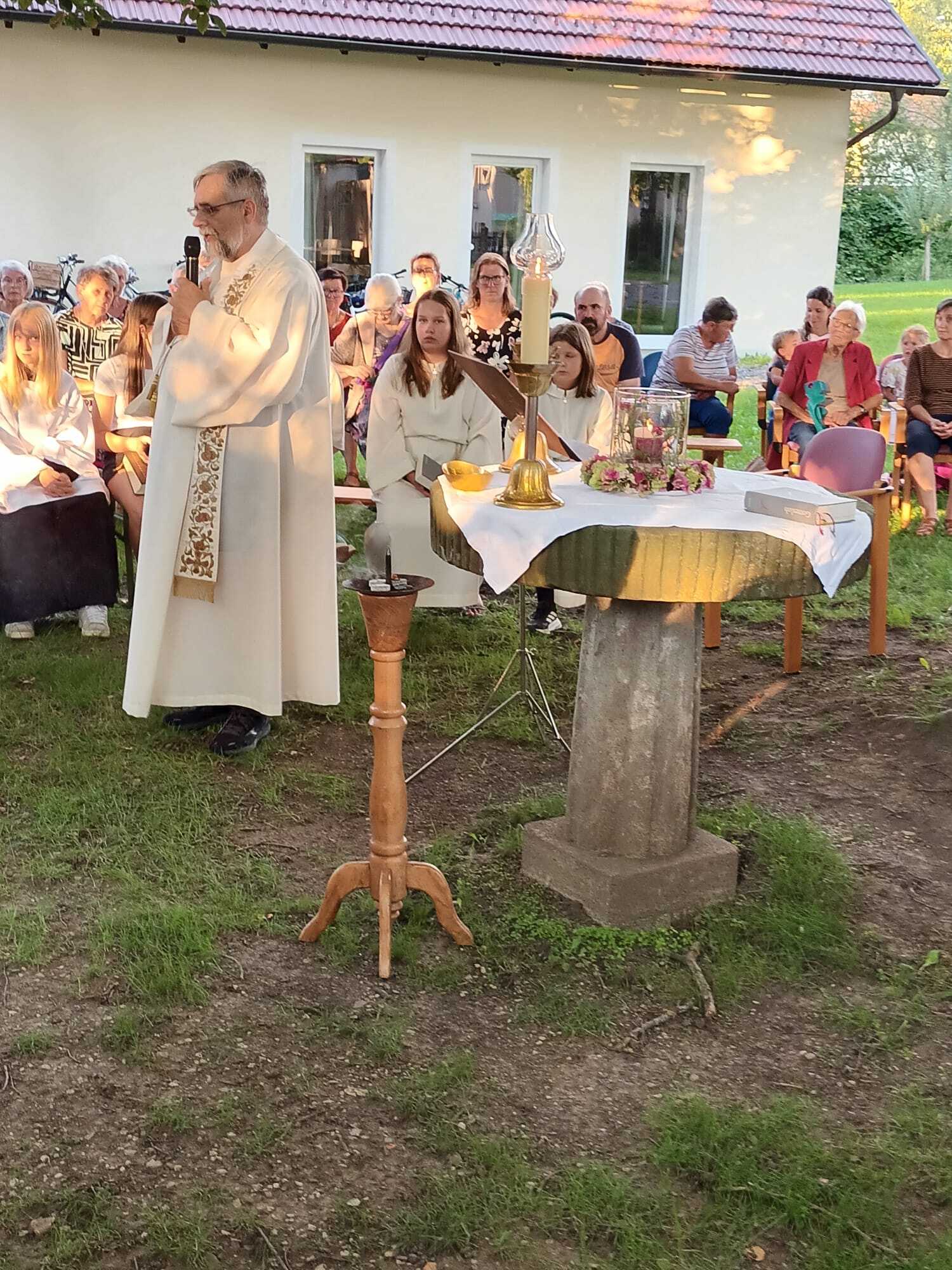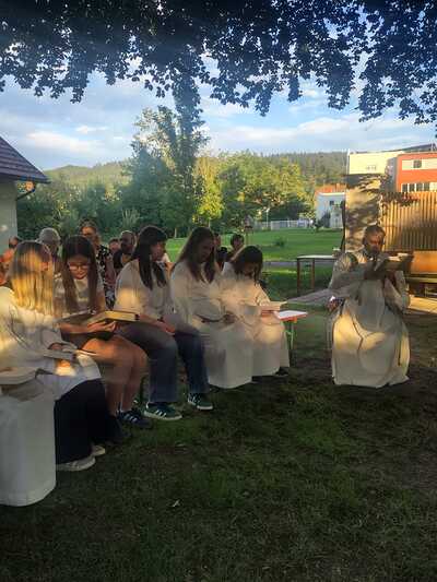 Pater Christian eröffnete mit acht Minis, die mit viel Freude mitgestalteten, sehr eindrucksvoll das „Abendlob“.