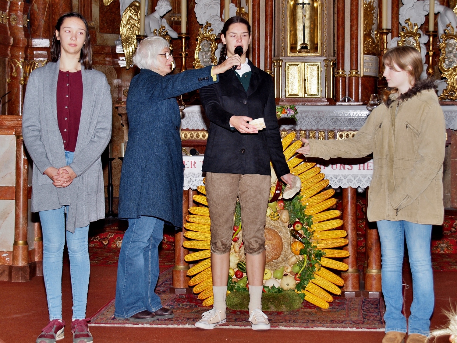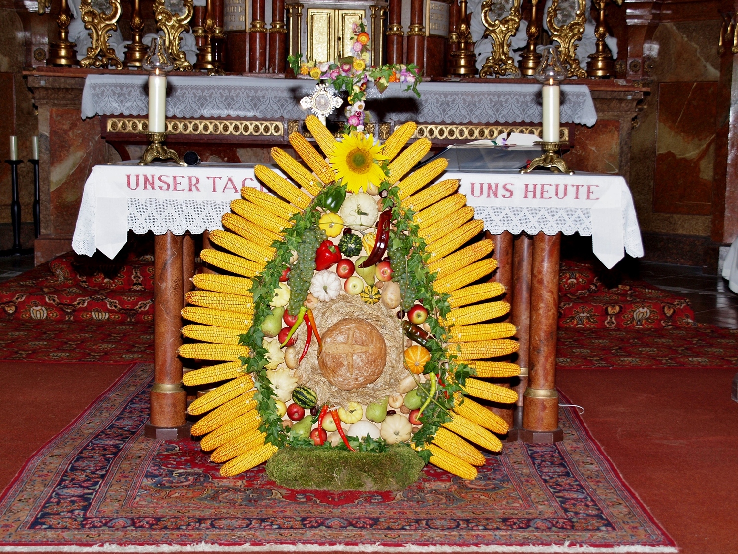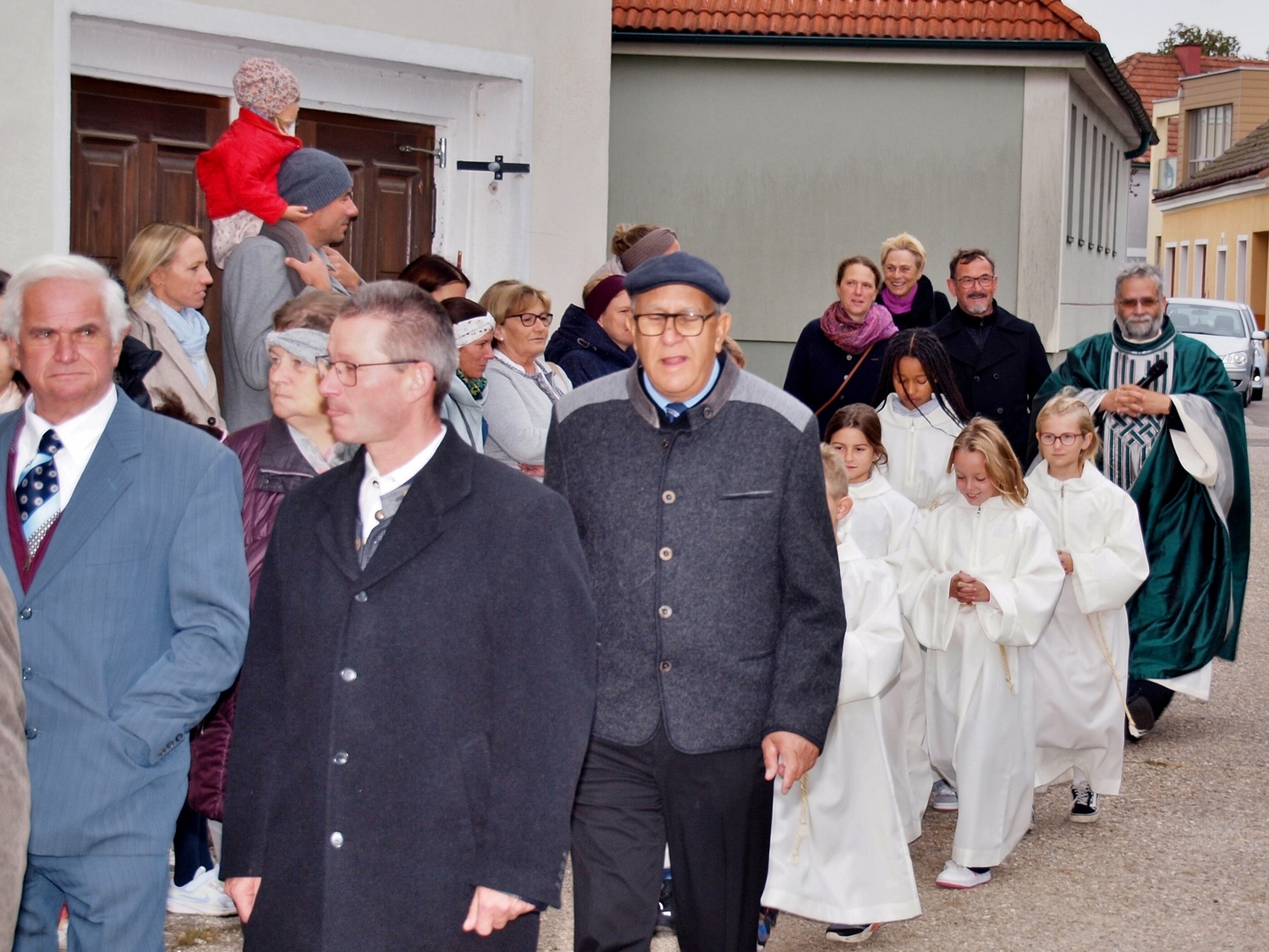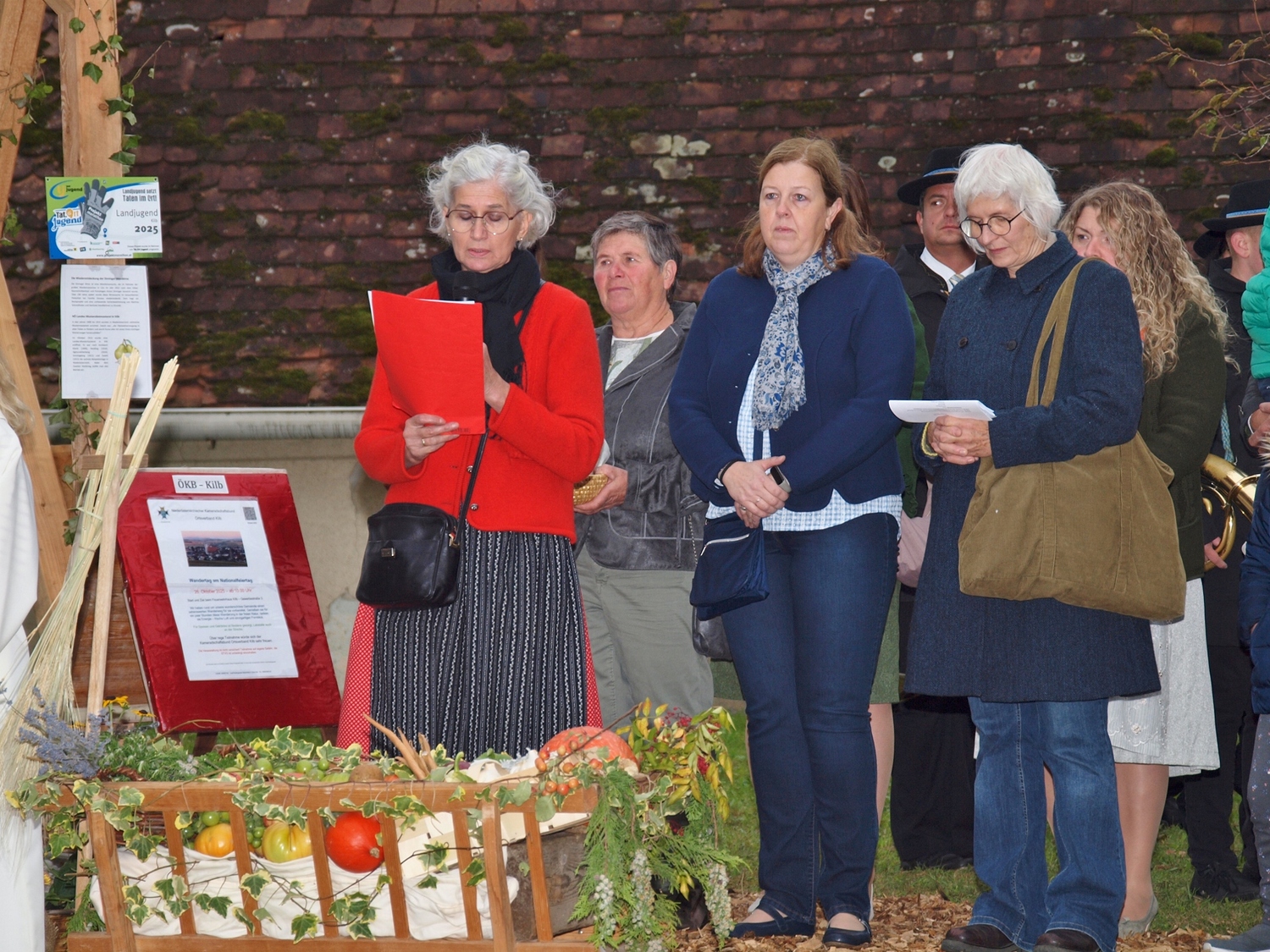 Die Vorbereitung dazu hatten dankenswerterweise die Bewohnerinnen und Bewohner von Ranzenbach, Ruttersdorf, Graben bei Kilb und Niederhofen übernommen. Begleitet von der Kilber Blasmusikkapelle, den Ministranten und P. Christian Gimbel zogen sie vom Pfarrtreff zur von der Landjugend beim Projektmarathon wiederhergestellten Mostpresse. Diese und auch die Erntekrone wurden von P. Christian gesegnet und der Volksschulchor umrahmte diese Segnung. Anschließend zogen alle in die festlich geschmückte Pfarrkirche. Der Festgottesdienst wurde von den oben genannten Bewohnerinnen und Bewohnern mitgestaltet, und nach der Messe wurden in Anlehnung an das Evangelium von der Brotvermehrung Brotstücke an die Bevölkerung verteilt.