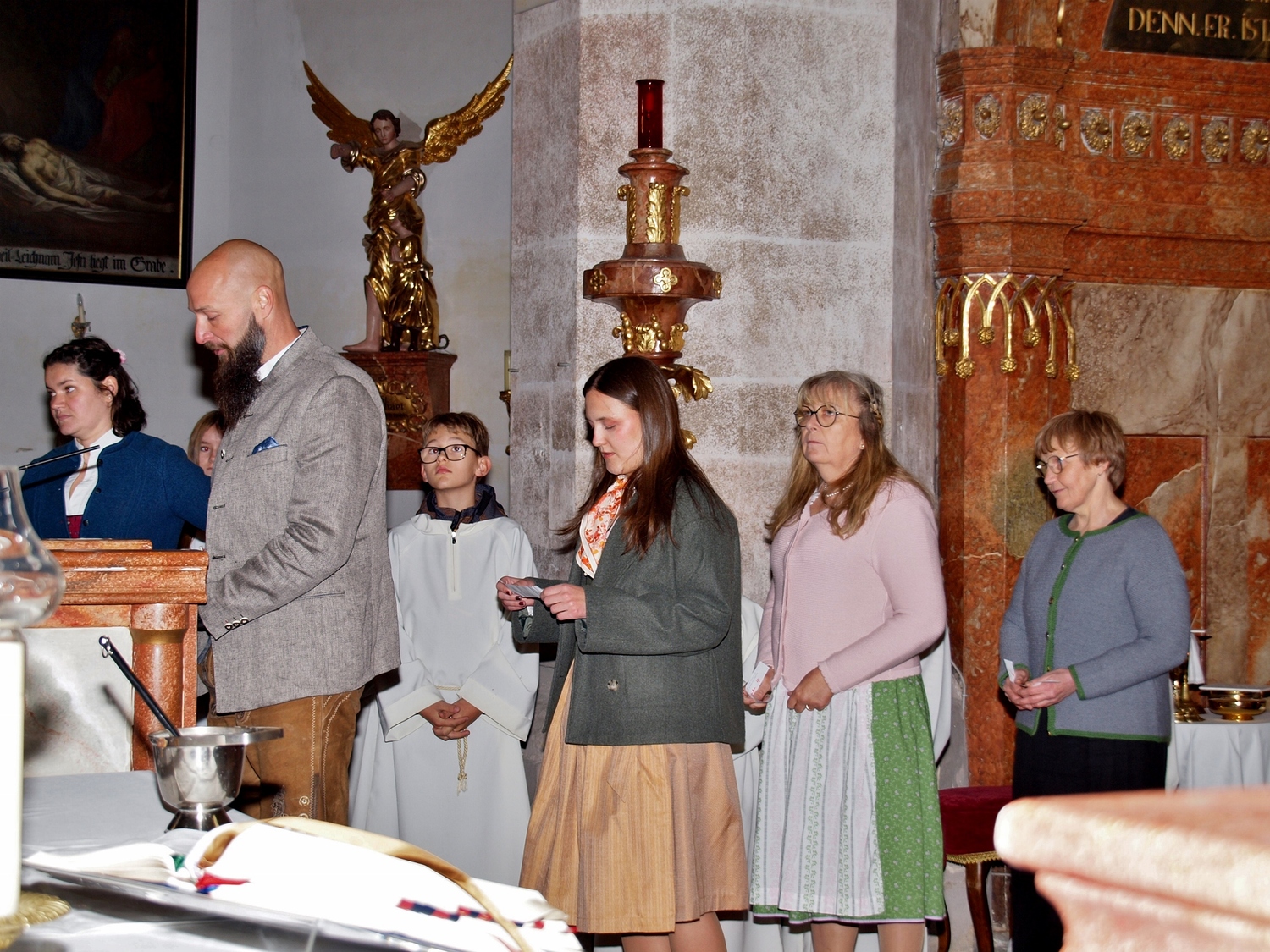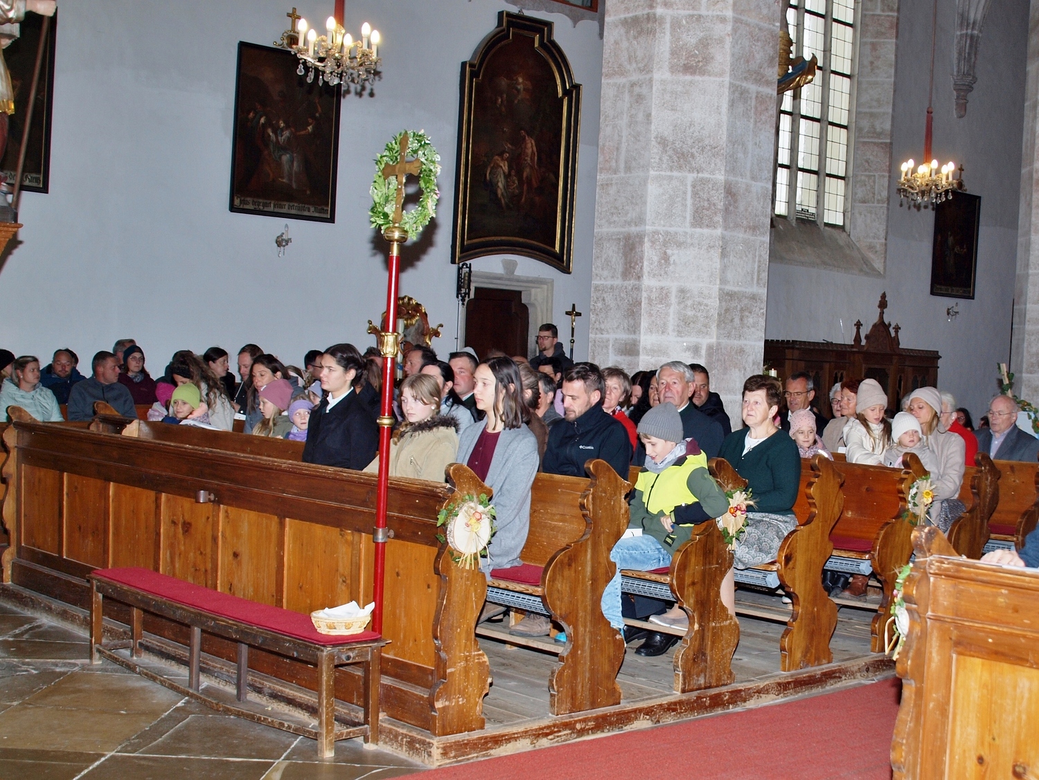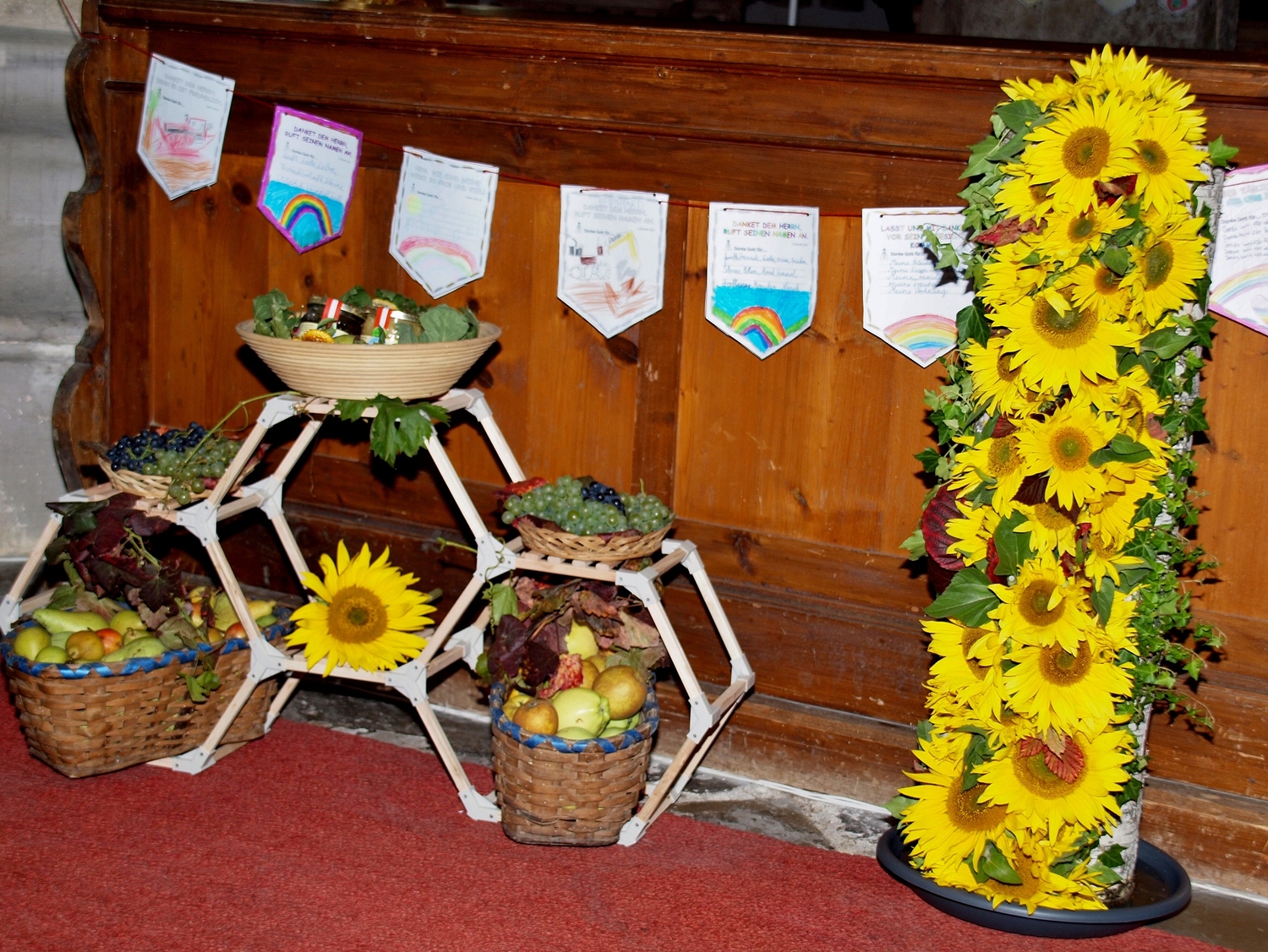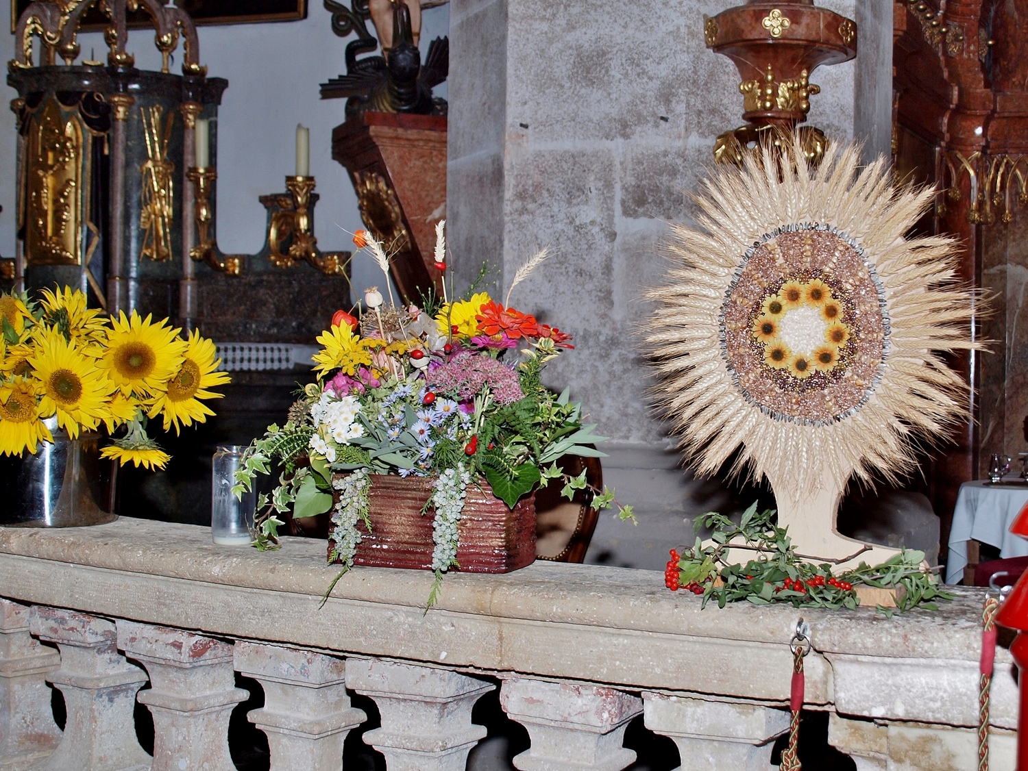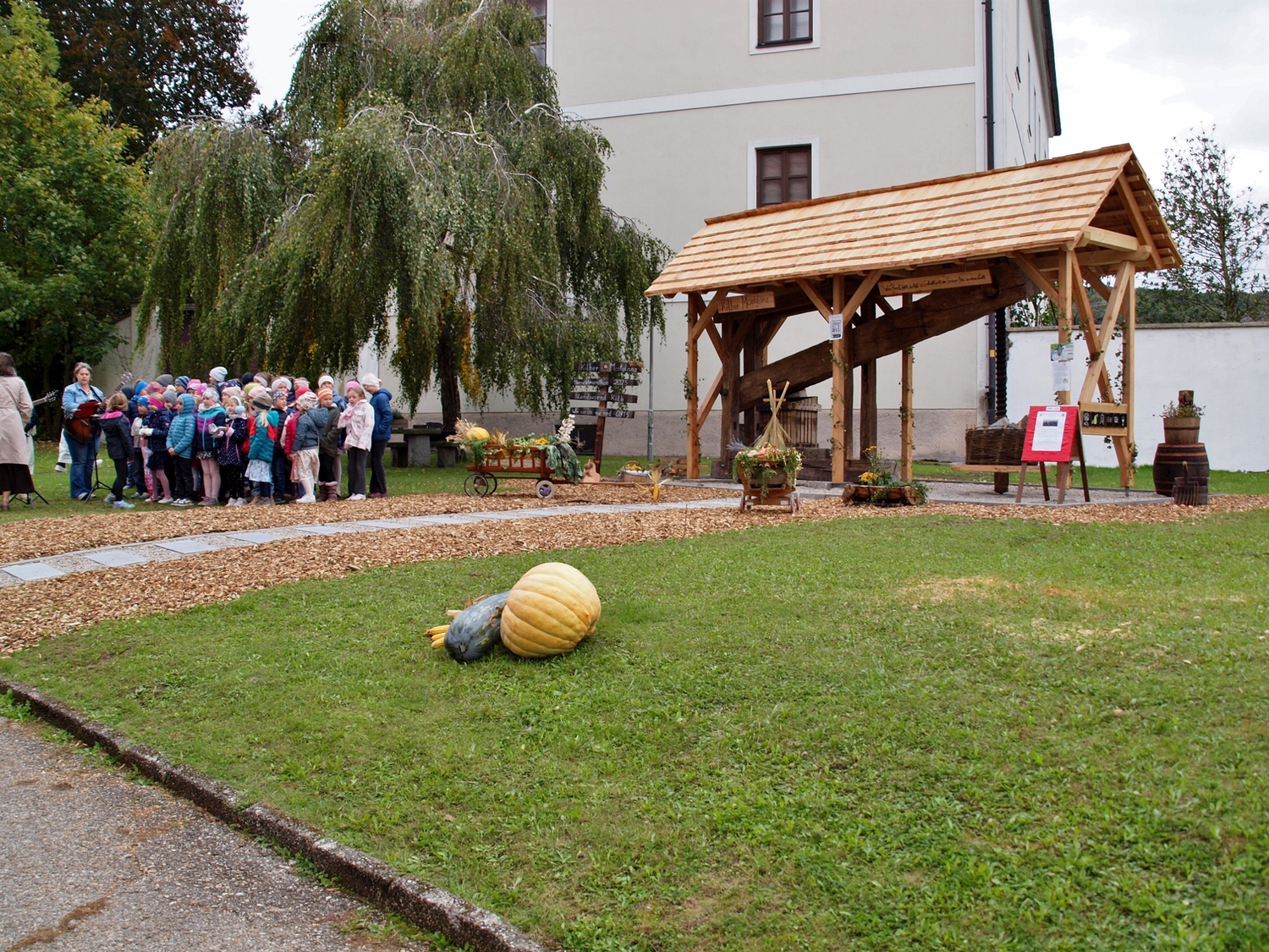 Die Vorbereitung dazu hatten dankenswerterweise die Bewohnerinnen und Bewohner von Ranzenbach, Ruttersdorf, Graben bei Kilb und Niederhofen übernommen. Begleitet von der Kilber Blasmusikkapelle, den Ministranten und P. Christian Gimbel zogen sie vom Pfarrtreff zur von der Landjugend beim Projektmarathon wiederhergestellten Mostpresse. Diese und auch die Erntekrone wurden von P. Christian gesegnet und der Volksschulchor umrahmte diese Segnung. Anschließend zogen alle in die festlich geschmückte Pfarrkirche. Der Festgottesdienst wurde von den oben genannten Bewohnerinnen und Bewohnern mitgestaltet, und nach der Messe wurden in Anlehnung an das Evangelium von der Brotvermehrung Brotstücke an die Bevölkerung verteilt.