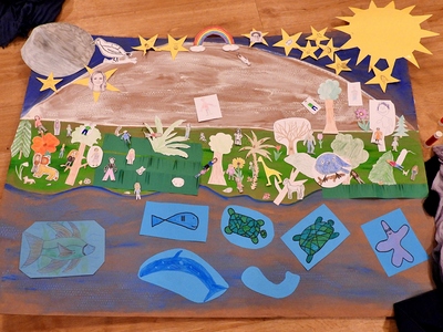 Der geplante Abtbesuch fiel an diesem Tag aufgrund der Bischofsweihe in Wien ins Wasser, Pater Christian sprang mit Anekdoten seines persönlichen Glaubenslebens ein. Ein schönes Gespräch über die Wirkung des Hl. Geistes in unserem Leben ergab sich daraus. Danach erarbeiteten die Jugendlichen die Schöpfungstage kreativ. Bei der gemeinsamen Abschlussliturgie entstand aus den Basteleien ein gemeinsames Schöpfungsbild, das in der Osternacht präsentiert werden soll.