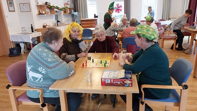 Passend zur närrischen Zeit erschienen einige Teilnehmerinnen und Teilnehmer in lustigen und kreativen Verkleidungen, was für viele heitere Momente sorgte. Es wurde gemeinsam gespielt, gelacht und geplaudert.