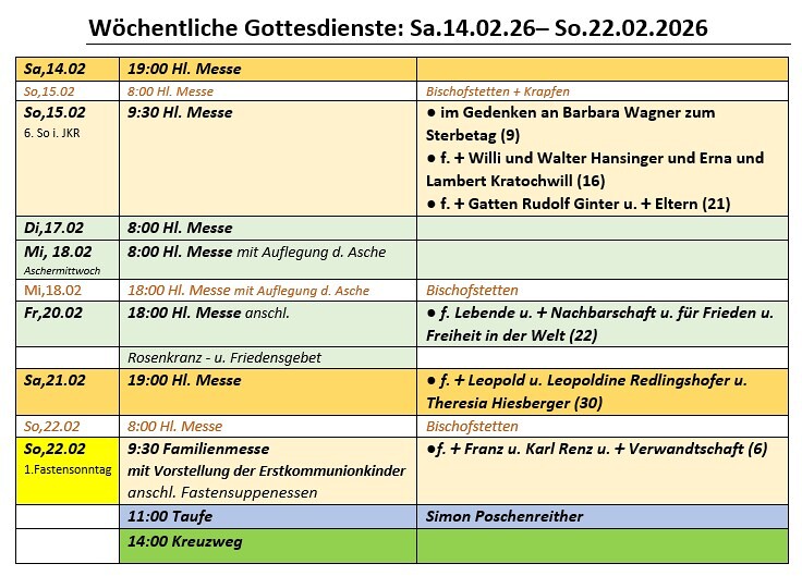 Die Gottesdienstordnung wird wöchentlich von der Pfarrkanzlei erstellt!