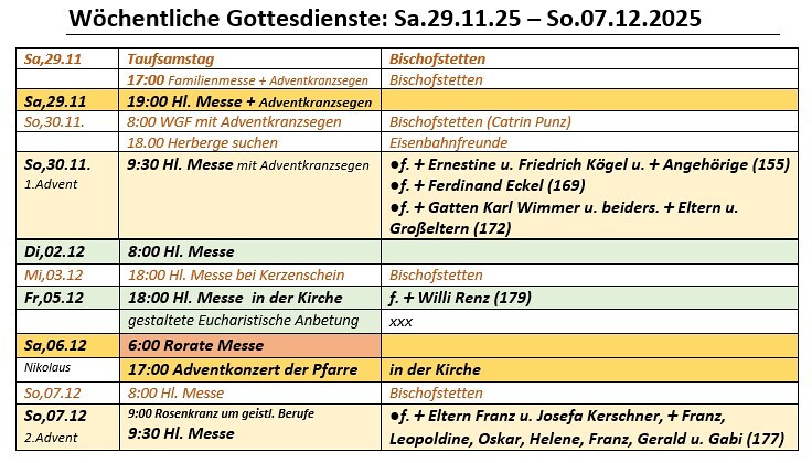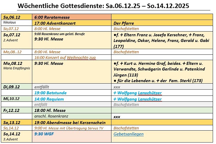 Die Gottesdienstordnung wird wöchentlich von der Pfarrkanzlei erstellt!