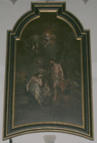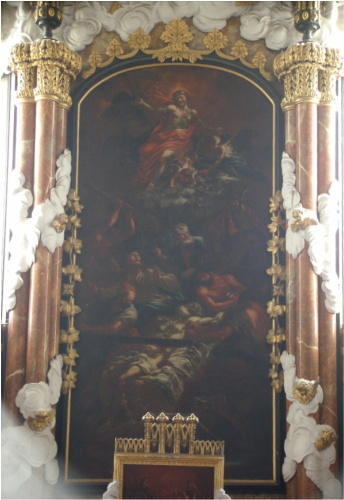 Das große Ovalbild auf der südseitigen Rückwand der Orgelempore kann aufgrund des Malstiles als ein Werk des Johann Georg Schmidt betrachtet werden. Dargestellt ist die Darbringung Mariens im Tempel. Möglicherweise handelt es sich dabei um ein ehemaliges Altarbild.