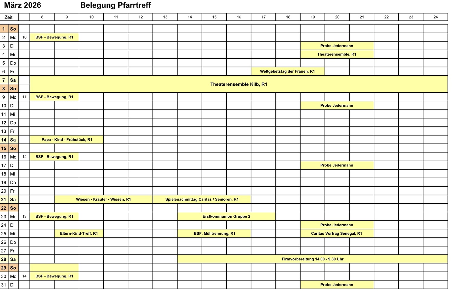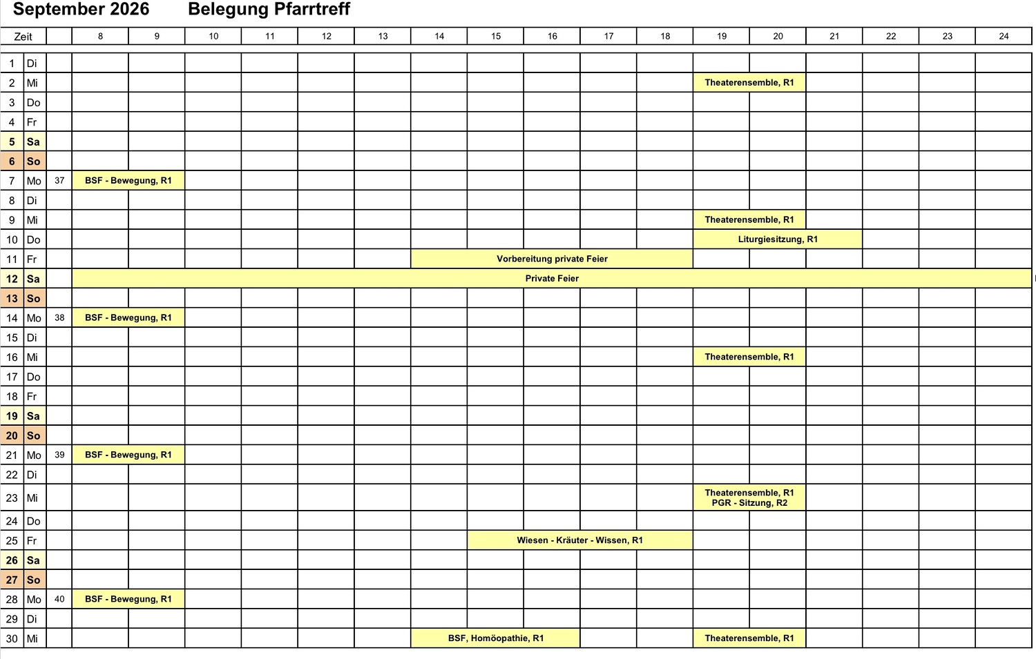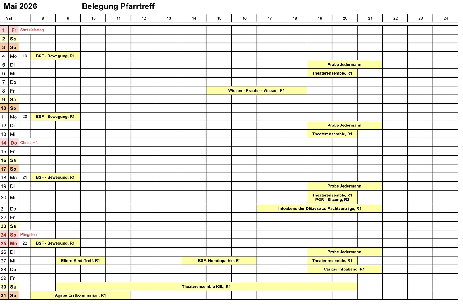 Kalender Pfarrtreffreservierungen