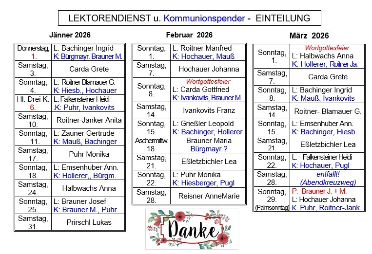 • Lektoren- & Kommunionspenderplan