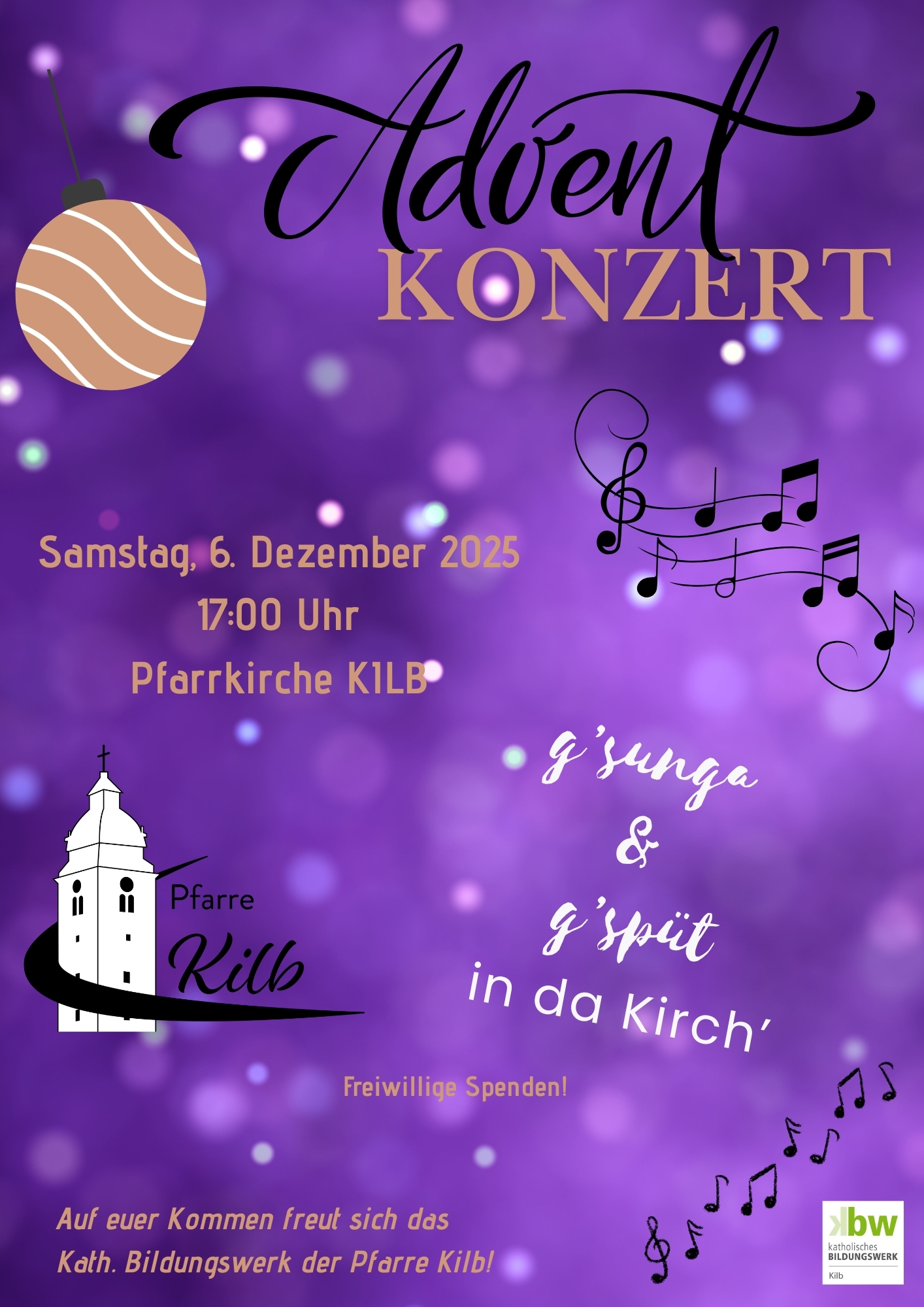 Am Samstag, 6. Dezember um 17 Uhr laden wir herzlich zu unserem stimmungsvollen Adventkonzert in die Kirche ein.
