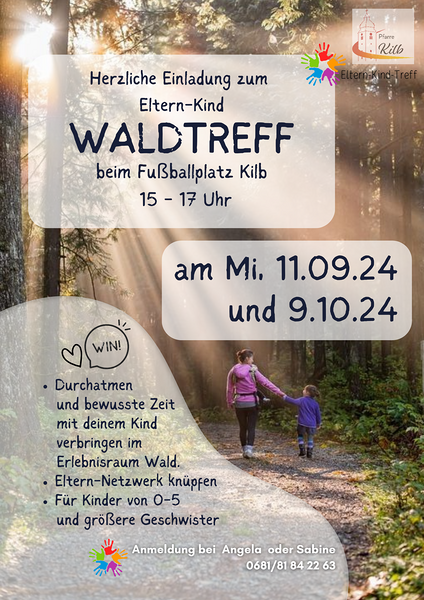 Herzliche Einladung Eltern - Kind Waldtreff am Mittwoch, 11. September 2024 von 15:00 bis 17:00 Uhr mehr: Eltern - Kind Waldtreff