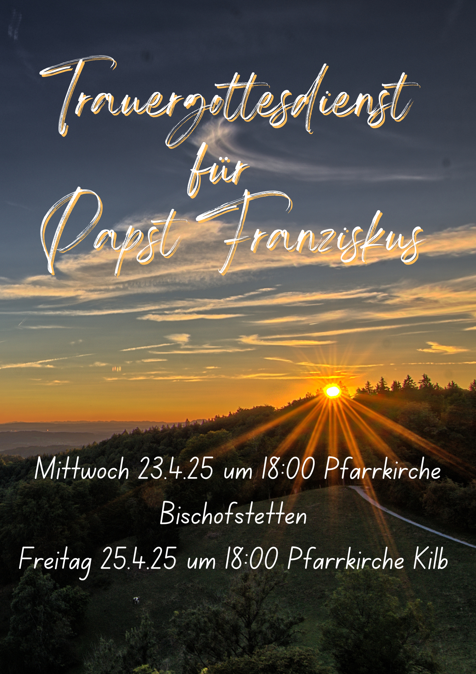 Herzliche Einladung Abendkreuzweg gestaltet v. Kilber Pfarrchor am SA, 12. April 2025 um 19:00 Uhr in der Pfarrkirche Kilb mehr: Abendkreuzweg gestaltet v. Kilber Pfarrchor